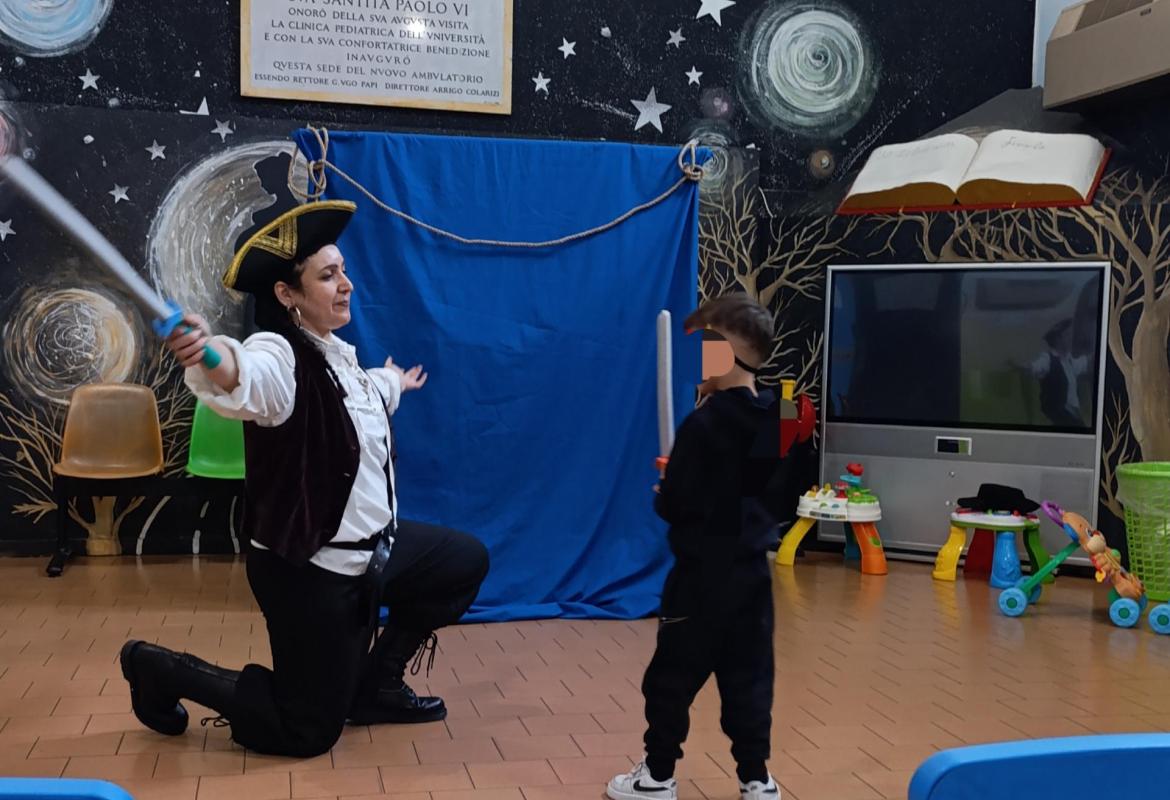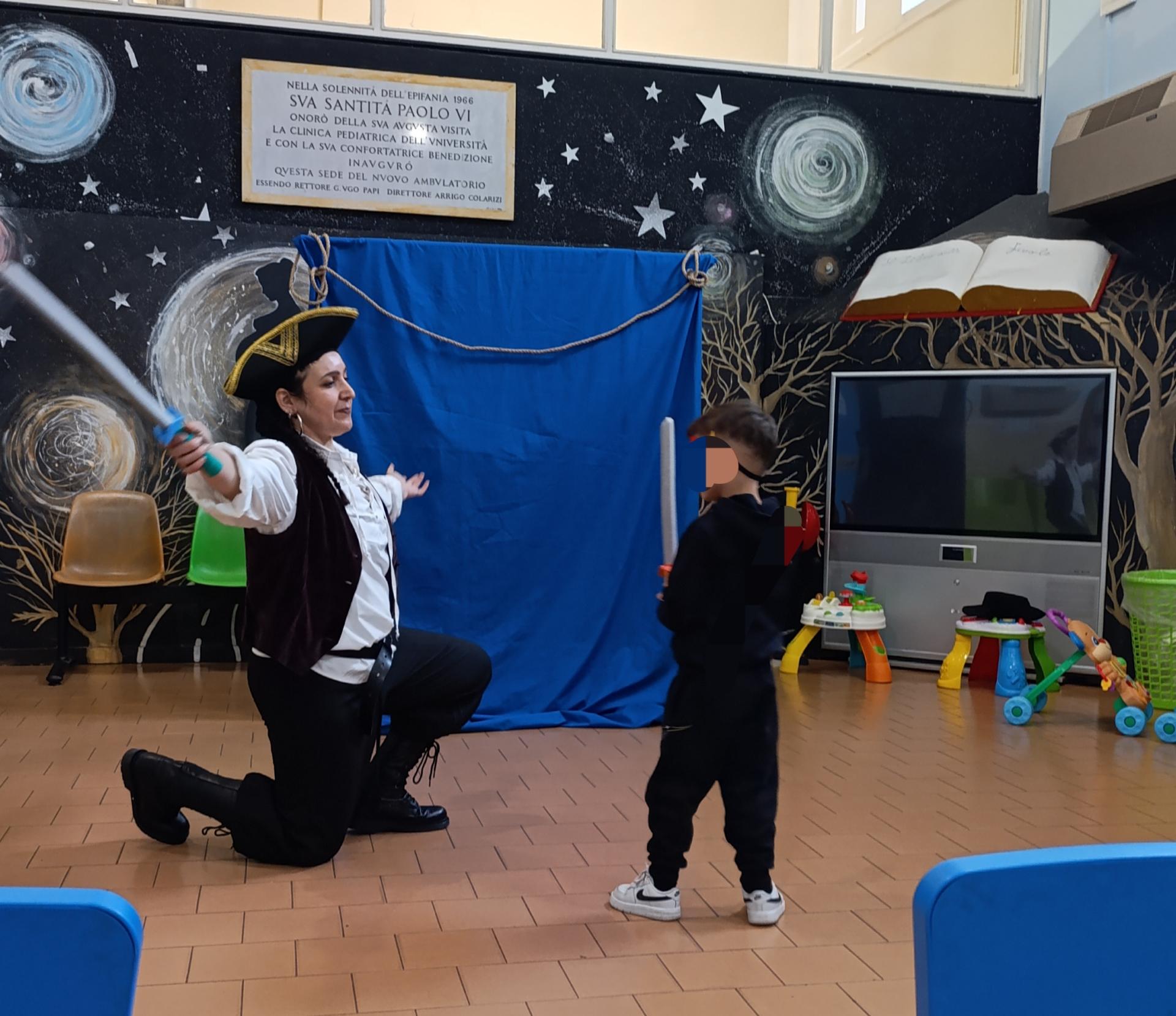 All'arrembaggio Ciurma! La nostra piratessa Giacomina Jones è venuta a trovare i bimbi della clinica pediatrica per un'avventura unica! Ci sono stati duelli con le spade, ricerca di tesori e combattimenti all'ultima risata con la strega del mare, che voleva mettere i bastoni fra le ruote all'avventura di Giacomina e dei suoi pirati, ma grazie al loro aiuto non ci è assolutamente riuscita!