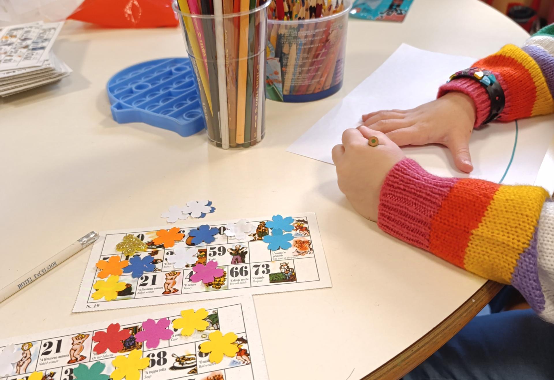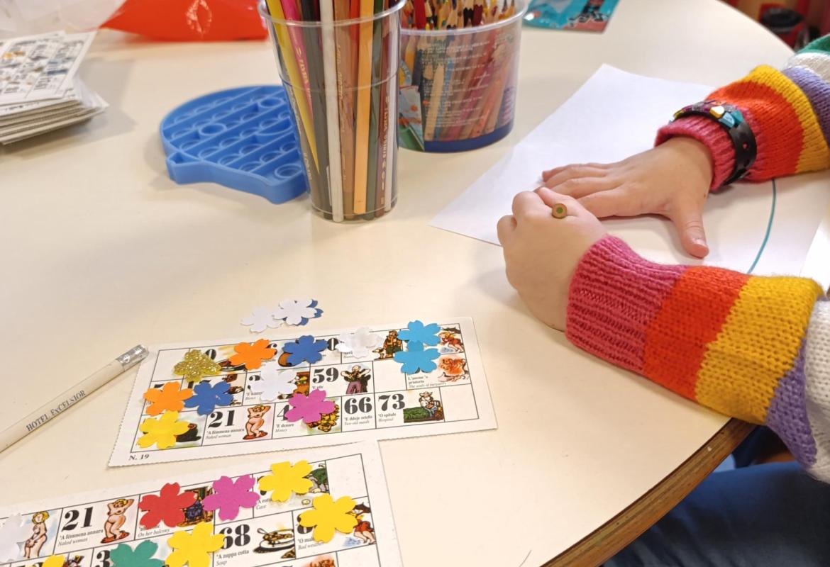Oggi Nhamhiria, insieme alle volontarie di Abio, ha incontrato i due fratelli F. e V., la piccola E. e E., di 15 anni, che ha sfruttato il tempo di attesa per anticiparsi qualche compito di scuola. I due fratelli si sono dedicati a tantissime attività, come disegnare, giocare all'impiccato e anche a tombola, anticipando il Natale. La piccola E, silenziosa ma giocosa, ha fatto altrettanto, e insieme ai due fratelli ha aiutato a decorare un tassello dell'albero di Natale, che piano piano prende vita. E., il più grande, si è dilettato fra compiti e chiacchiere e la mattinata è passata in fretta e con piacere per tutti!