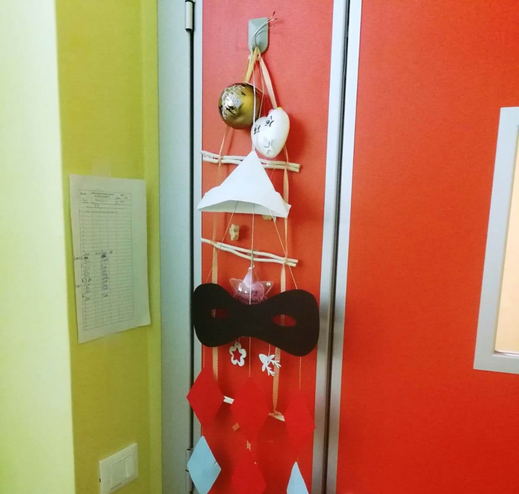 Ieri pomeriggio con M.,15 anni, ci è venuto un dubbio. Ma esattamente, quando comincia il Carnevale? E mentre chiacchieravamo di lingue, di dialetti e di caffè a km zero che fanno uno strano effetto sulle mamme, senza quasi rendercene conto abbiamo costruito un arlecchino da parete. Sapete dove è stato attaccato? Sopra ad una decorazione natalizia (con mongolfiera in aggiunta). Come ha detto la dolce M :si tratta di un evidente fenomeno di stratificazione delle feste! Tutto è avvenuto ad Ematologia Pediatrica al policlinico Umberto I.