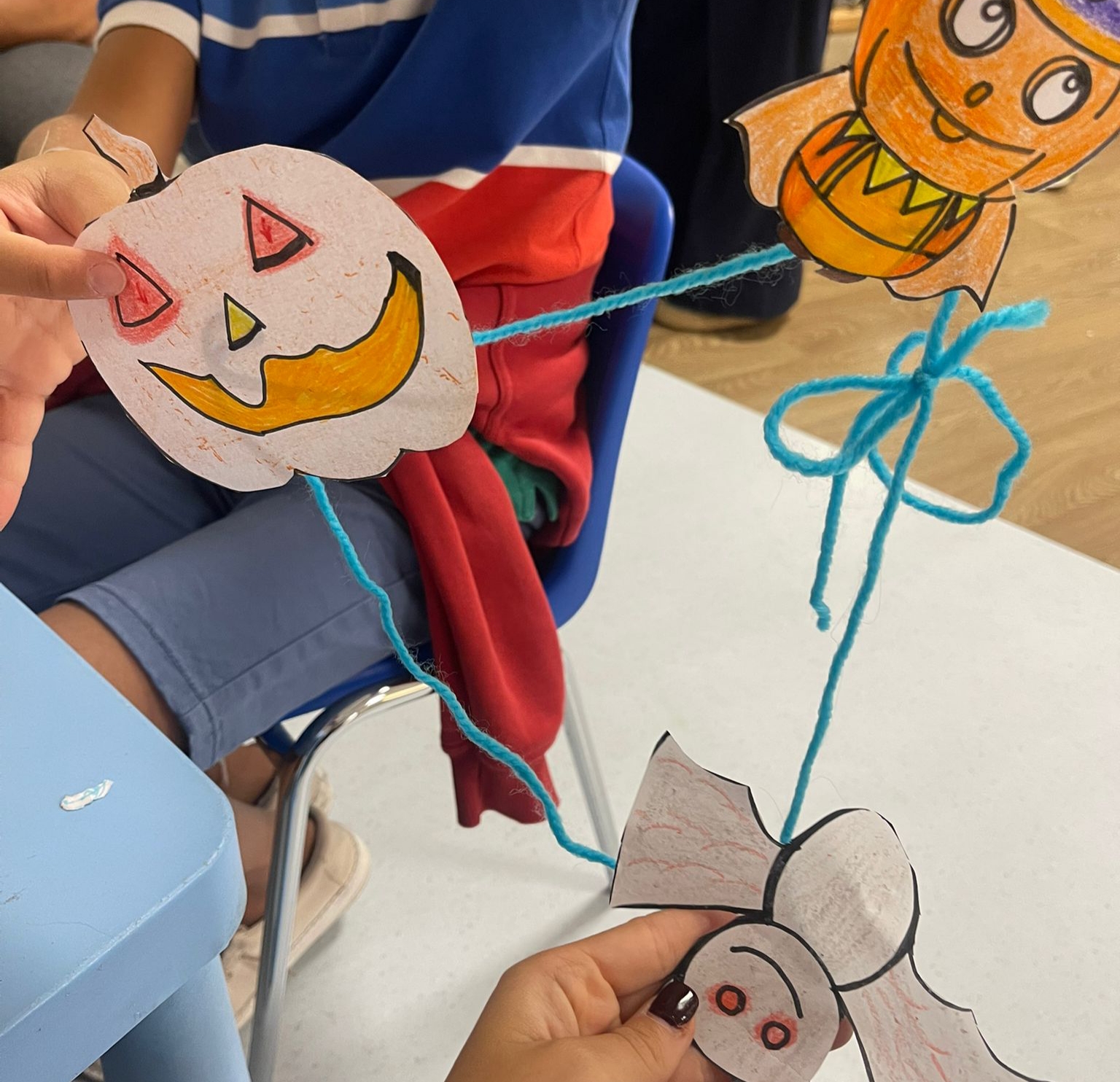In occasione di Halloween, Angelica e Erika hanno portato ai bambini delle sagome di halloween da decorare e poter attaccare ad un filo per creare un festone. L'idea è piaciuta tantissimo!!