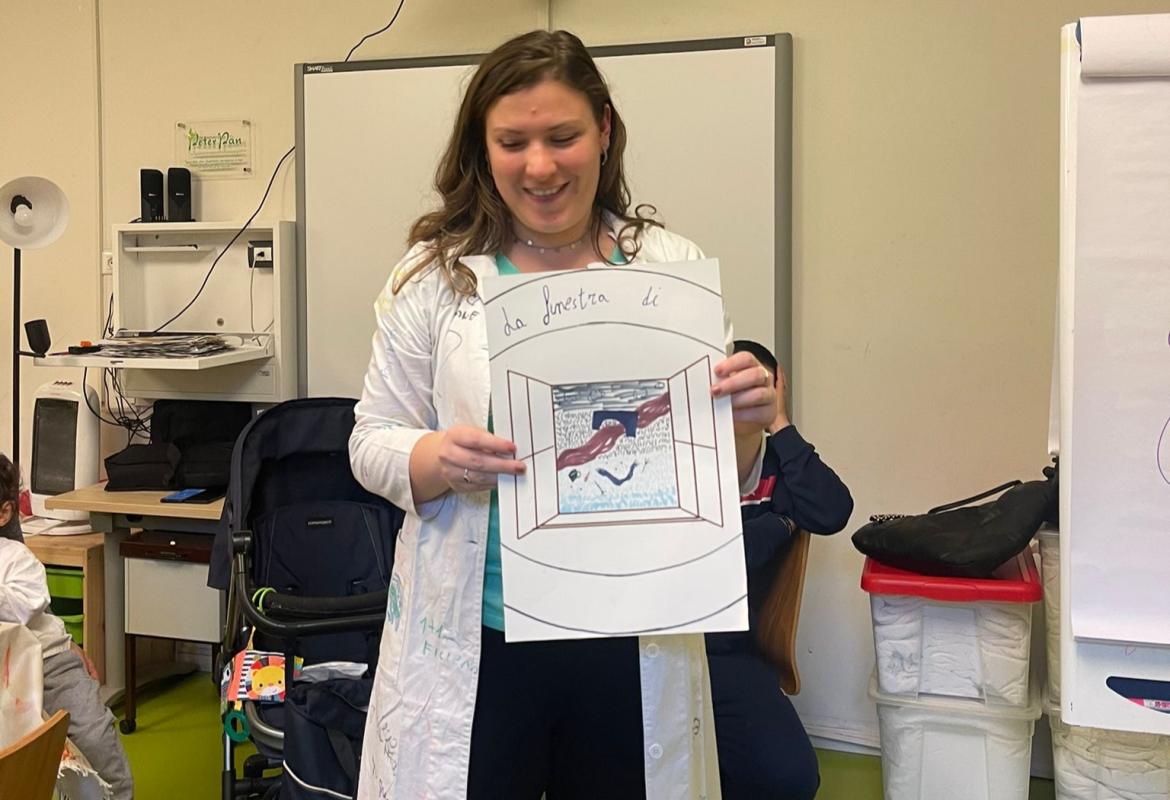 Erika e Angelica,hanno svolto il laboratorio di Arteterapia presso la residenza Peter Pan. L’attività di oggi consisteva nel disegnare un panorama dalla finestra, dove ognuno poteva aggiungere particolari e usare i colori a propria scelta, senza preoccuparsi di riprodurre la realtà. Per esempio, se il sole solitamente è giallo o arancione, oggi avrebbe potuto essere rosa. I bambini coinvolti sono stati moltissimi e tutti hanno avuto modo di esprimersi attraverso i colori. Tra le chiacchiere il piccolo Y. ha imparato ad Angelica qualche parola in ucraino,la sua lingua madre. Queste attività vanno sempre oltre il singolo lavoretto che il bambino porta a casa,sono anche occasioni di scambio e accrescimento personale e reciproco.
