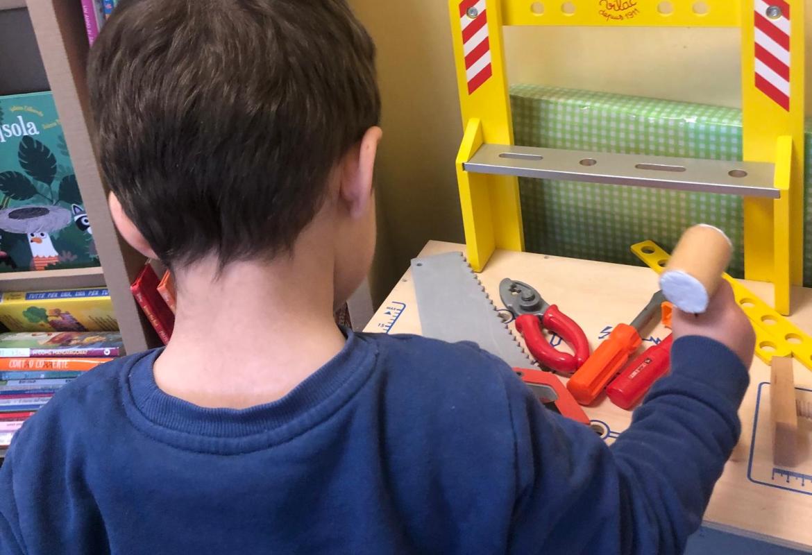 Poi insieme al piccolo D. hanno giocato con attrezzi e macchinine.