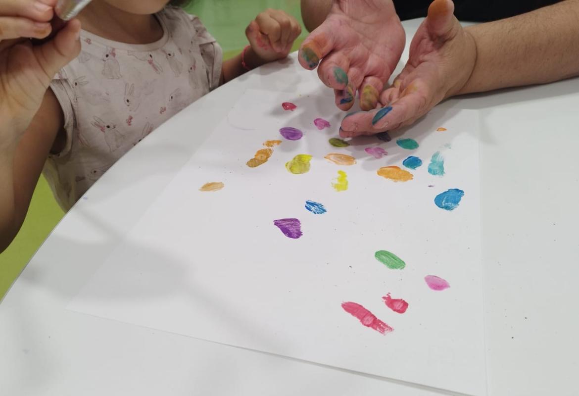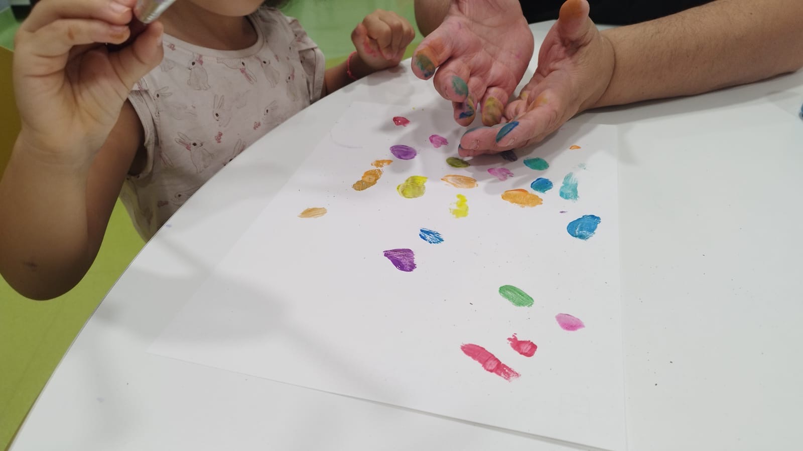 Poi hanno conosciuto la piccola E. con la quale, utilizzando le dita e le tempere, hanno fatto un bellissimo disegno.