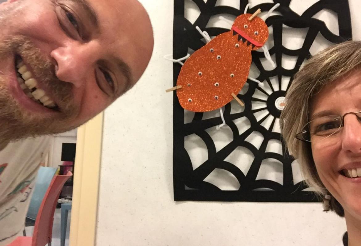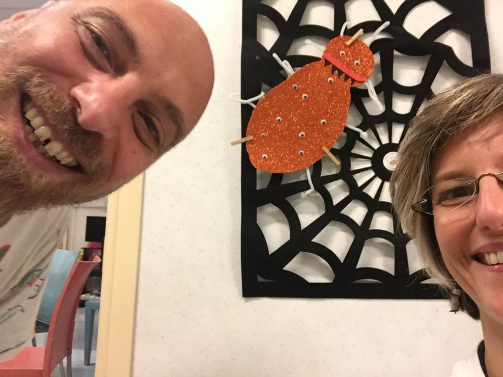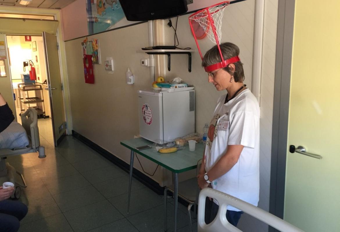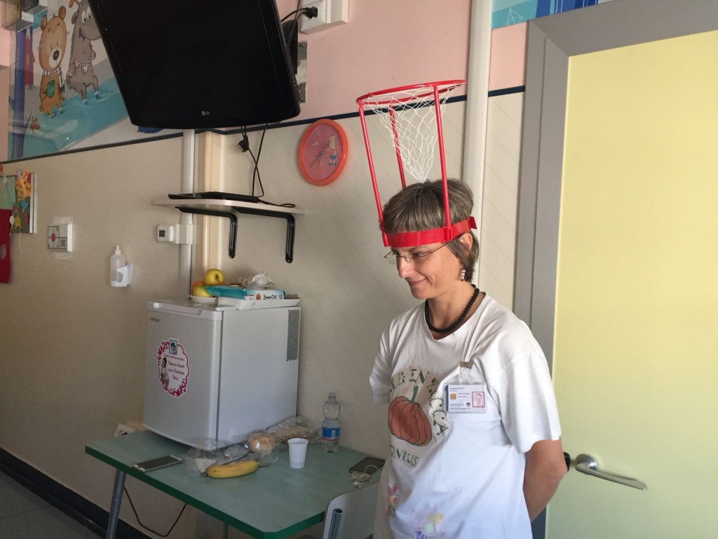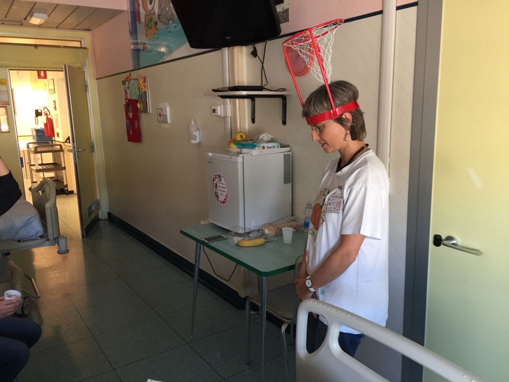 Lo scorso sabato solo una bambina poteva uscire dalla stanza. Ma non ci siamo scoraggiati per questo, e abbiamo iniziato a giocare in reparto. Siamo diventati un campo da gioco vivente! Con F. abbiamo fatto una super partita con tutta la famiglia. Grandi risate e questa volta ha vinto la squadra dei maschi nonostante il tifo per le femminucce. Poi abbiamo cambiato attività e ci siamo spostati in sala giochi, per continuare la decorazione dell’albero dell’autunno e per l'inizio delle decorazioni di Halloween.