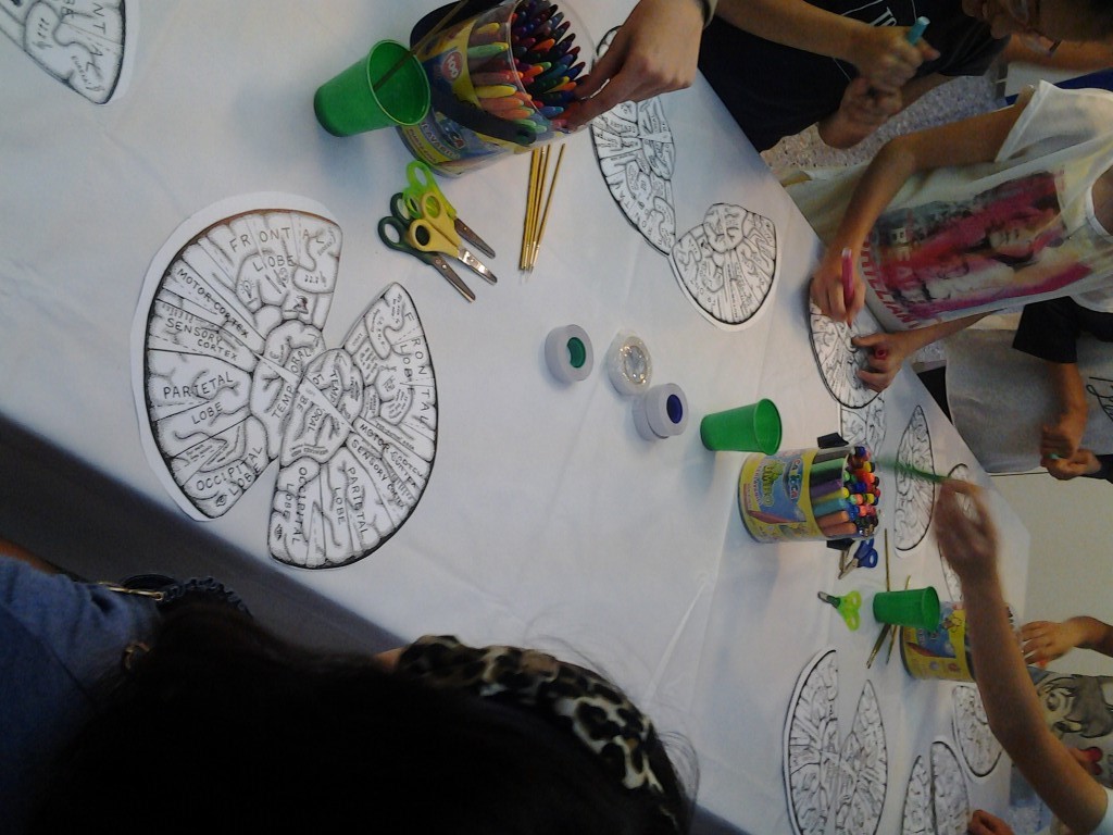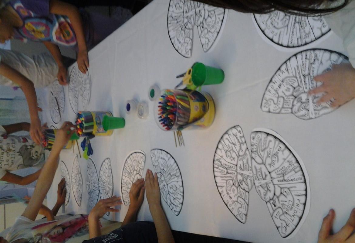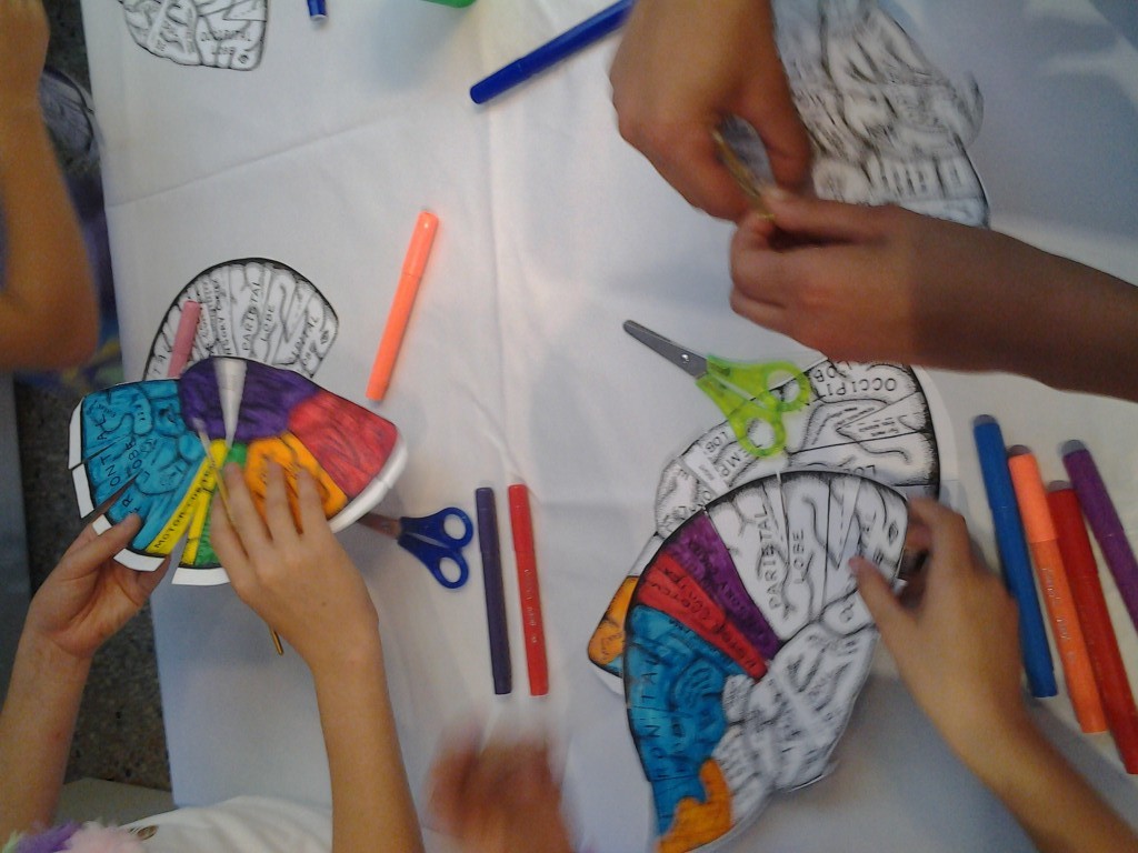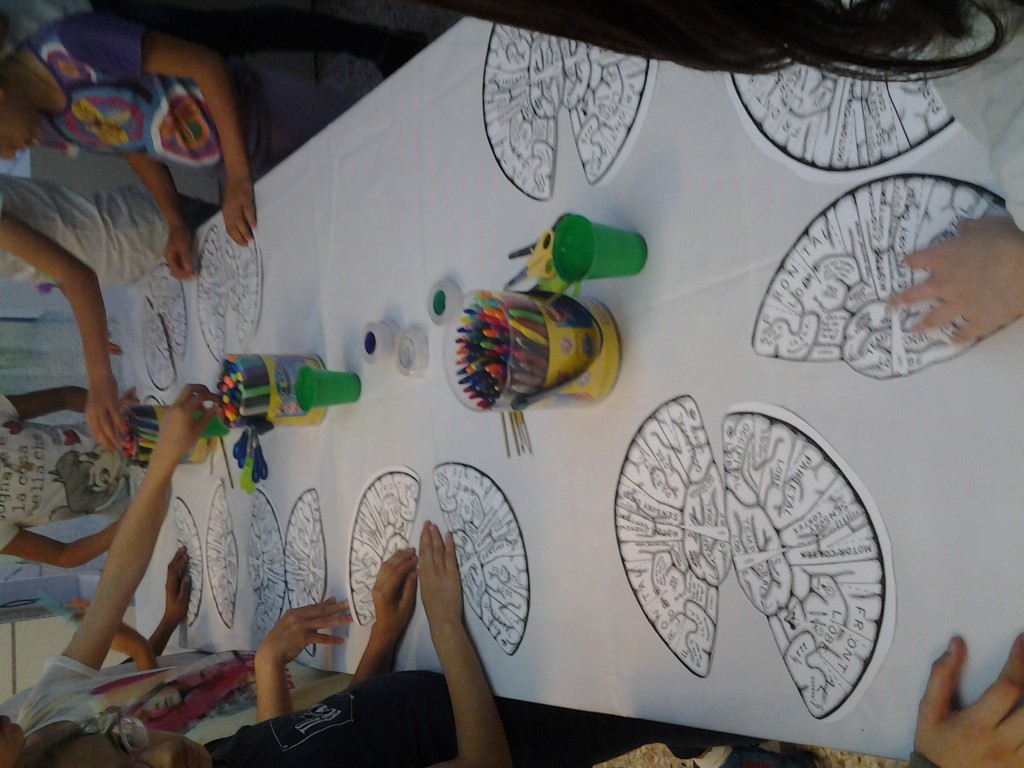 Cervelli in Mostra ci ha visto impegnati per tutto il pomeriggio. Abbiamo costruito e colorato il cervello umano coinvolgendo circa 80 bambini, tutti davvero molto curiosi e molto preparati allo stesso tempo. Ci hanno ascoltato con pazienza e poi si sono scatenati nella costruzione del cervello Umano.