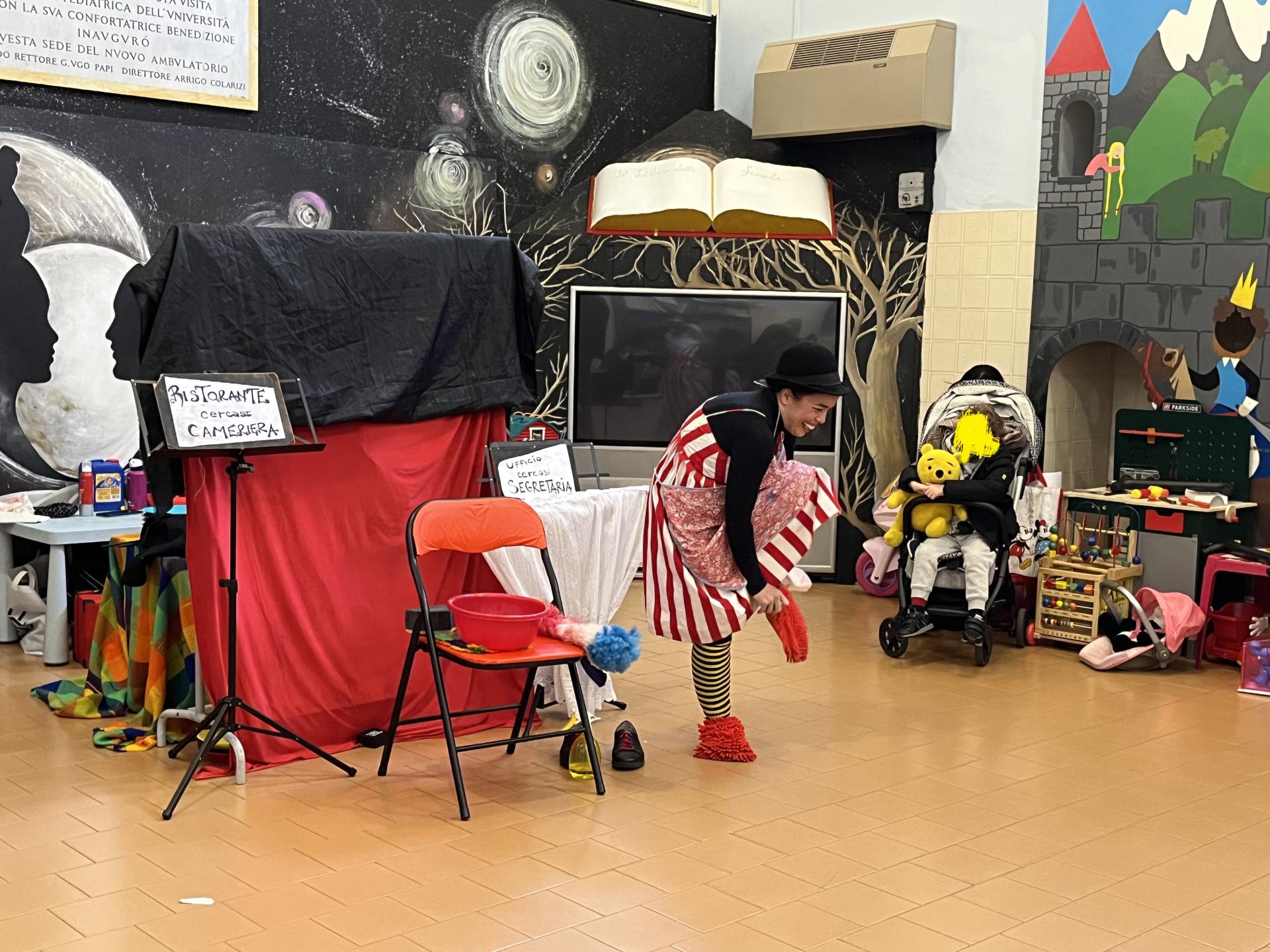 Nei reparti ospedalieri portiamo la nostra esperienza con ludoterapisti e musicoterapisti agendo in stretta collaborazione con i servizi di sostegno psicologico ospedalieri. Crediamo fermamente nella integrazione delle competenze, avendo come unico obiettivo la promozione del benessere dei bambini e delle bambine ricoverate. L'integrazione viene resa possibile proprio grazie al linguaggio del gioco: adottato da tutti noi quando incontriamo i bambini qualsiasi sia il mezzo con cui giochiamo.