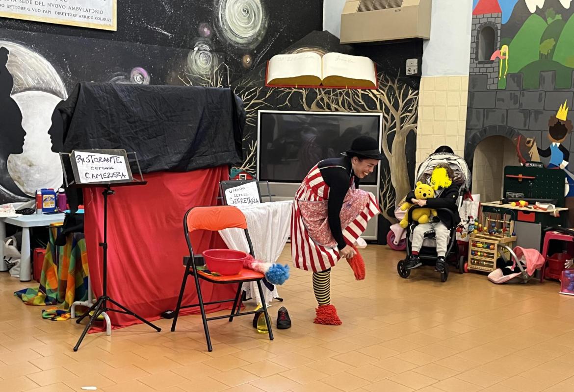 Negli anni, sempre di più, ci siamo avvicinati al mondo dei reparti pediatrici e in particolare nell’universo delle patologie ematoncologiche. Giochiamo con l’arte, la fantasia, con i burattini; sono questi i nostri mezzi di supporto ai bambini e alle bambine che vivono l’esperienza ospedaliera e della malattia ematoncologica. Amiamo migliorarci e imparare dall’esperienza, aggiungendo competenze e specificità; con questo spirito abbiamo accolto la musicoterapia nei nostri linguaggi di incontro del mondo bambino.