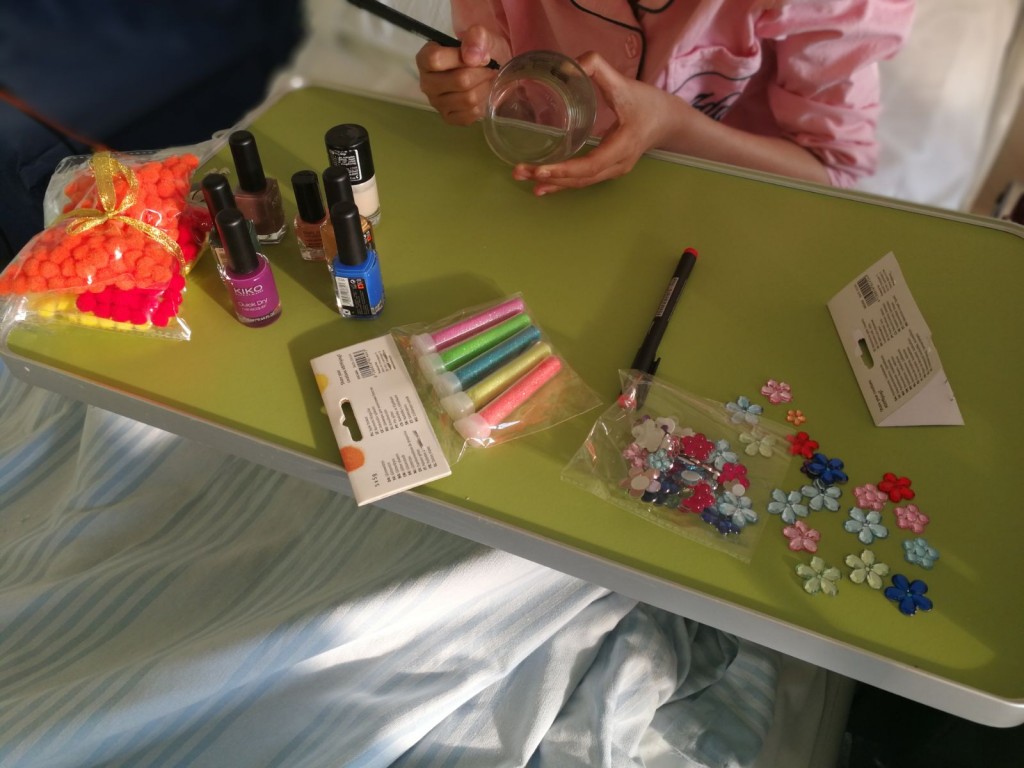 Lo scorso sabato pomeriggio ci siamo intrattenuti nel reparto di oncologia pediatrica dell'ospedale Gemelli di Roma. Avevamo portato tutto il materiale per trascorrere qualche ora divertendoci. L'idea era quella di decorare i bicchieri con colori e smalti. Sapevamo che una volta iniziato avremmo perso la cognizione del tempo. Siamo riusciti ad andare da tutti i bambini che erano in reparto... anche nell' isolamento. E tutti hanno decorato i loro bicchieri in modo unico! Abbiamo anche conosciuto la festa della Luna di metà autunno, ce l'ha insegnato una dolce bambina cinese, che ha decorato il proprio bichiere con il tema della luna. Un altro gran bel pomeriggio passato grazie ai nostri bambini!