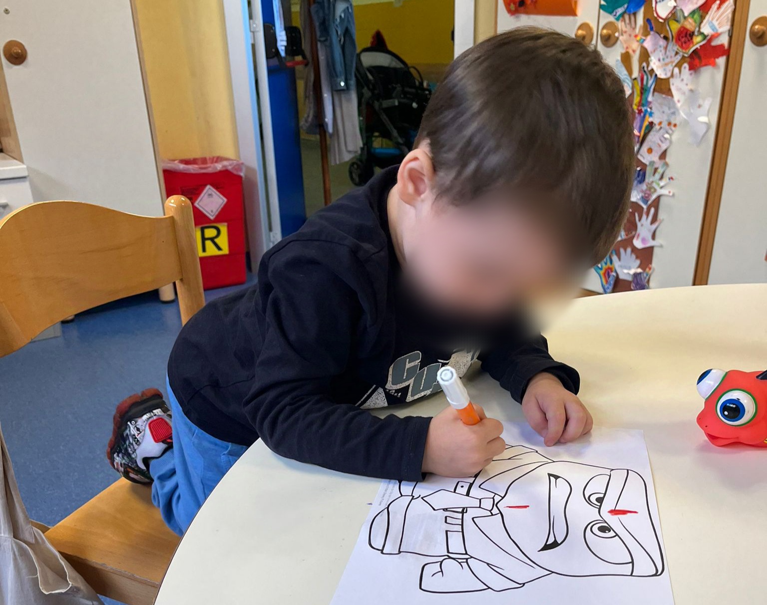 A Ematologia Lucrezia ha incontrato A, V, L, J e D. Con tutti loro ha dedicato del tempo alla creatività disegnando e colorando stampe. C’è chi ha lasciato la propria impronta da appendere all’albero delle orme, esplorato i giochi più colorati e composto vari puzzle; infine, c'è chi ha collaborato per cercare gli animali più strani nel mappamondo presente in Sala Giochi.