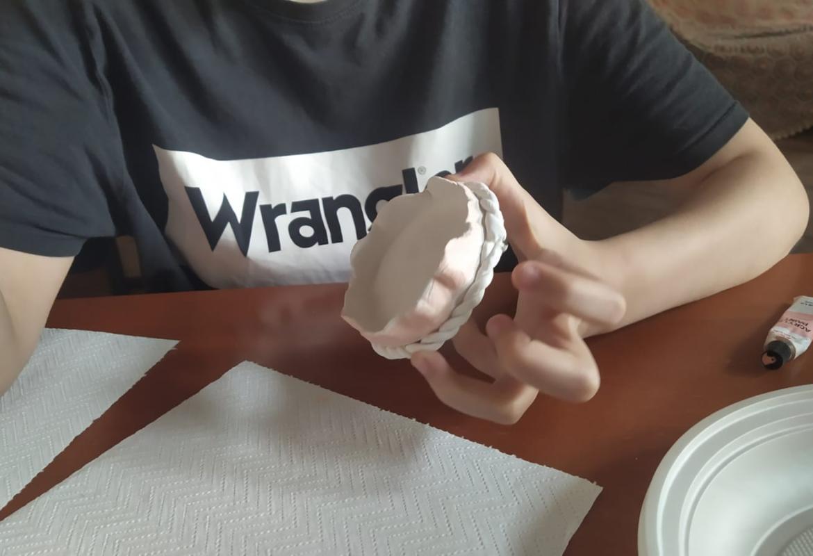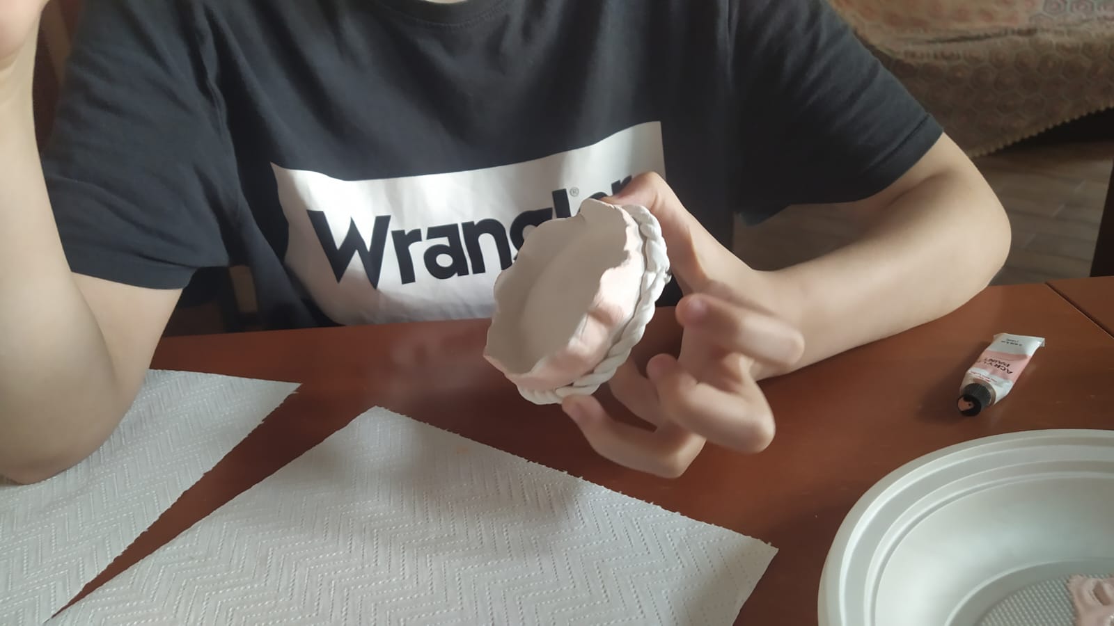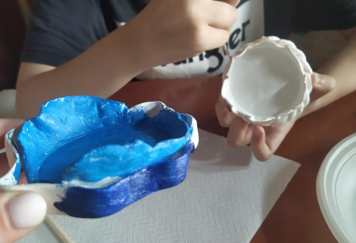 Erika ed L. hanno decorato gli svuota tasche che avevano creato con il das qualche tempo fa. Ognuna ha decorato lo svuota tasche dell'altra, in base a come è la sua personalità: L. ha una personalità più profonda e seria, quindi svuota tasche blu e rosso, Erika ha una personalità più frizzantina quindi svuota tasche rosa e giallo.