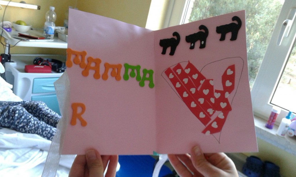 Un altro sabato pomeriggio da ricordare. Ci siamo divertiti nel reparto di ematologia pediatrica, a disegnare e incollare il cartoncino. ne sono venuti fuori due biglietti d'auguri, in esclusiva mondiale, per il compleanno di una mamma.