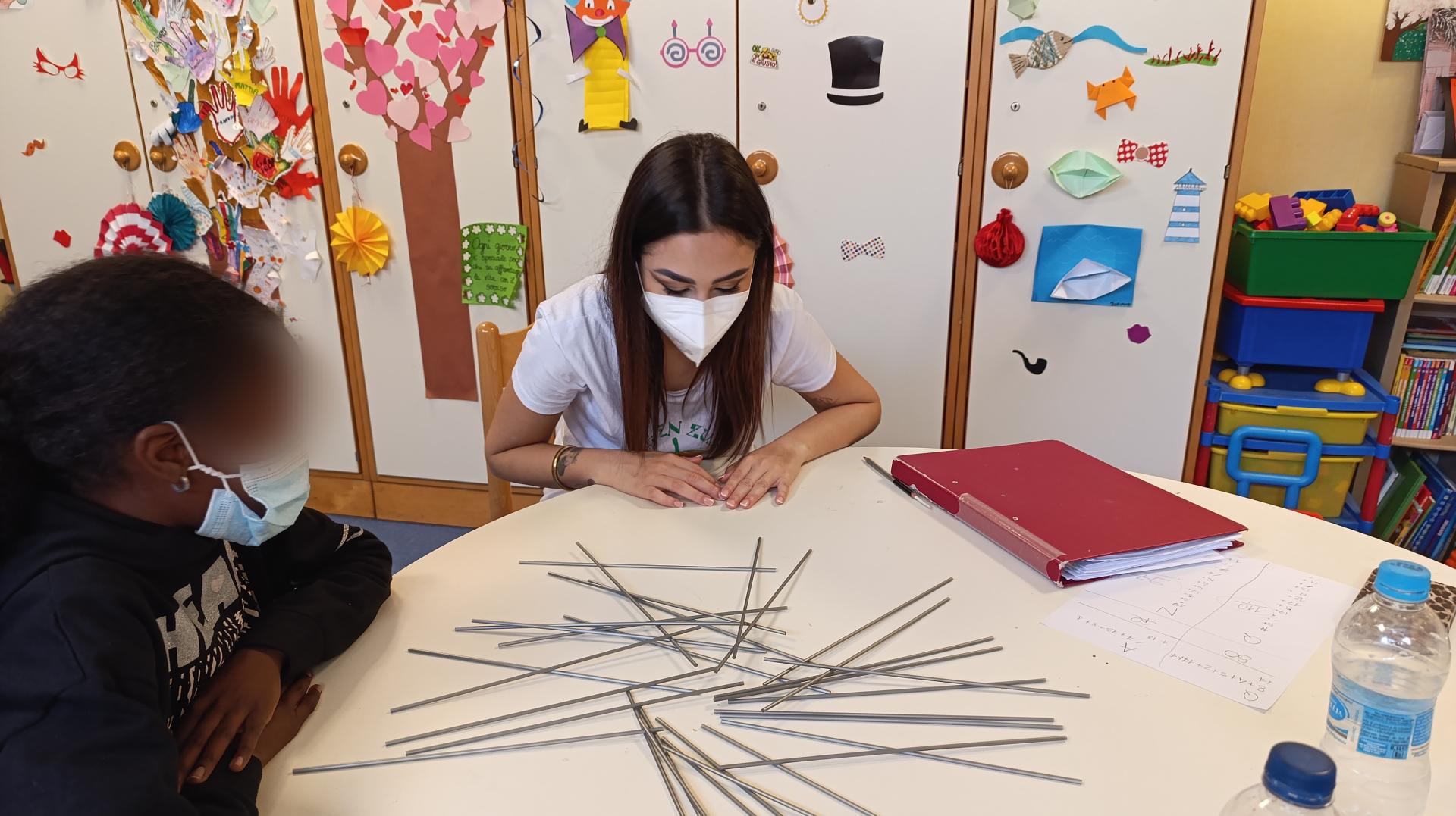 Nhamhiria e Angelica hanno incontrato Q. e N.,ormai conoscenti di Sale in Zucca da diverso tempo, quindi è stato facile accordarsi sulle attività da fare,che sono state davvero molte. Tra le diverse cose sono stati usati gli acquerelli e dei bastoncini grigi per replicare il gioco Shangai,dato che non si avevano a disposizione i bastoncini originali. In ogni caso il divertimento è stato,come sempre, elevato al quadrato!