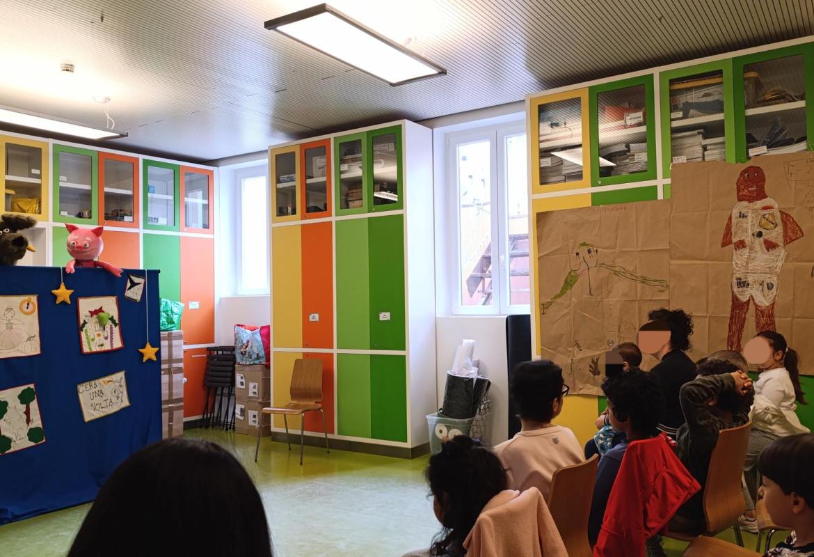 Alla Casa di Peter Pan, la nostra operatrice Corinna ha presentato ai bimbi uno spettacolo nuovo di zecca! Con personaggi ancora più simpatici: una fata pasticciona che sbaglia le storie, una strega il cui lupo è diventato vegetariano, un maialino che è il più bello del reame e tanti altri personaggi ancora da scoprire! Ai bimbi e alle bimbe è piaciuto tantissimo e alla fine hanno anche avuto modo di conoscere il lupo e Alfredo il maialino!