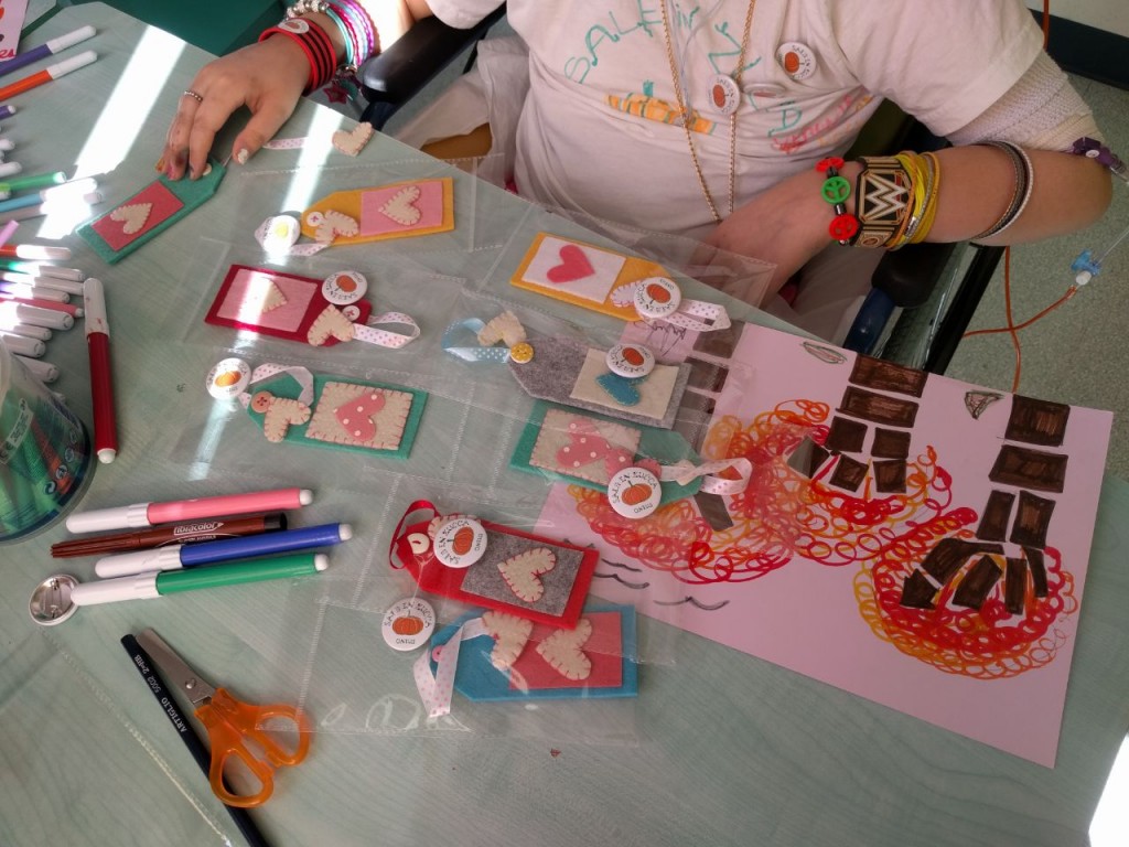 "Bimbi, bimbi, dobbiamo dirvi subito una cosa, ma le mamme non devono sentire". E' andata più o meno così, sabato scorso, vigilia della festa della mamma. Grazie alla complicità di qualche papà, bambini e ragazzi di Oncologia pediatrica hanno personalizzato i segnalibri in pannolenci di Sale in Zucca per fare un regalo alle mamme del reparto nel giorno della loro festa. E' per questo che diciamo: AUGURI A TUTTE LA MAMME!
