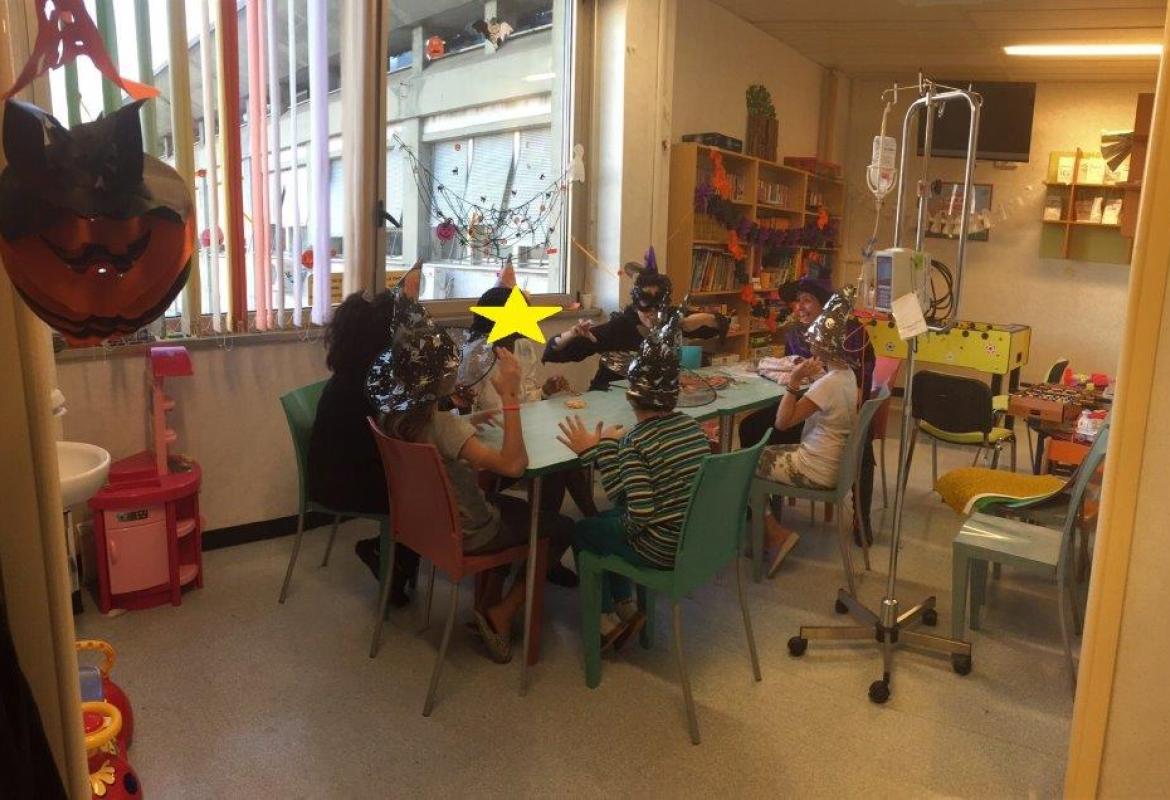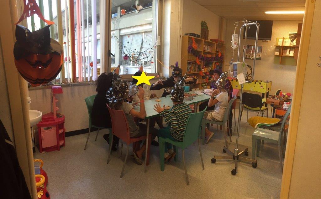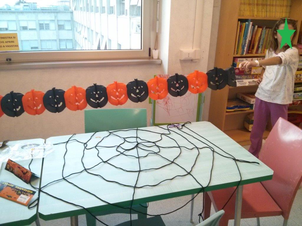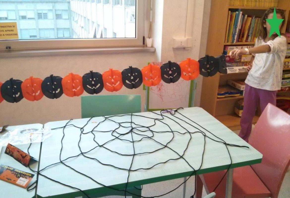 E' Halloween anche ad Oncologia pediatrica al Gemelli! Abbiamo colorato la sala e poi sono arrivate le streghe! Ma erano ludoterapiste, che hanno portato le caramelle e la musica.