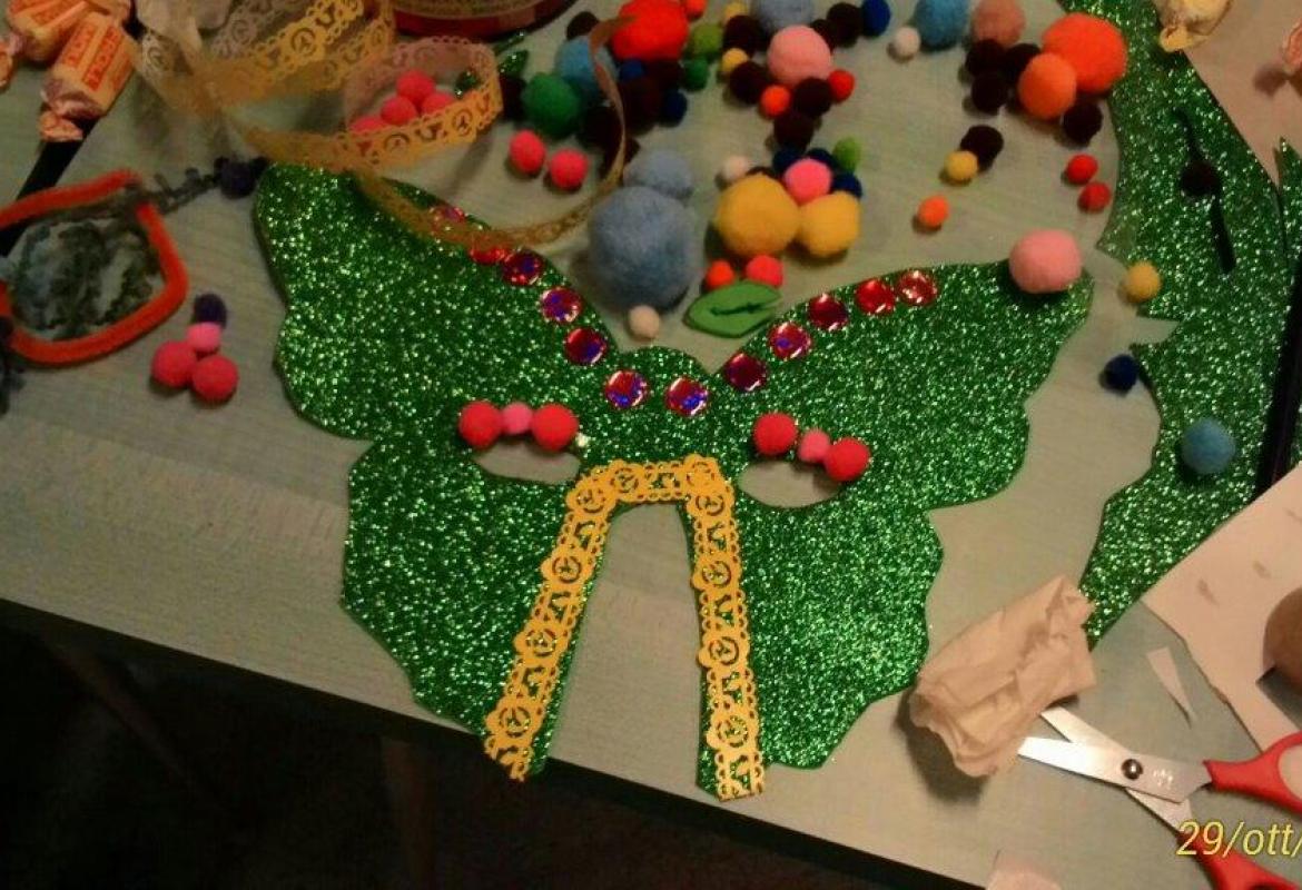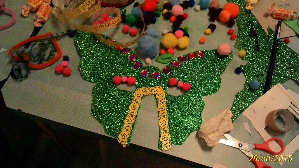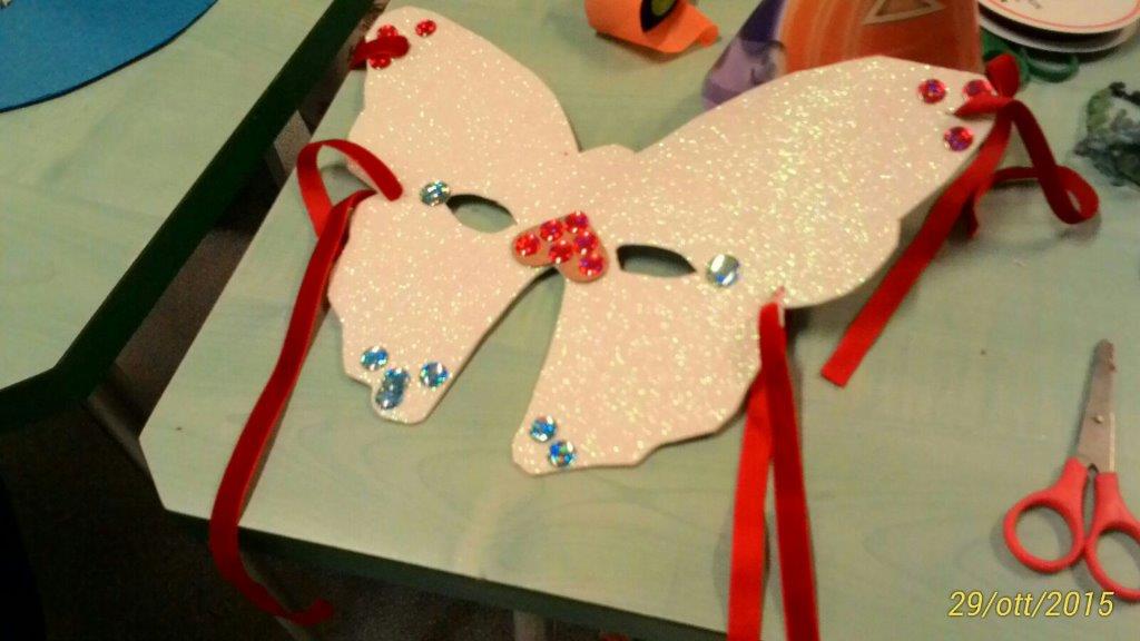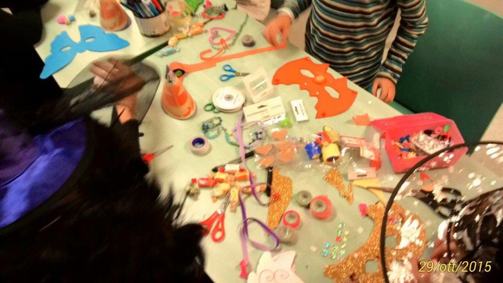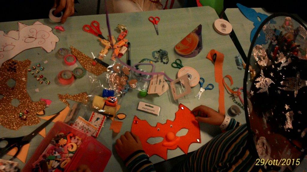 Ah, e pure le maschere paurose artigianali. Le abbiamo costruite noi con il pannolenci. Anche questa è ludoterapia!