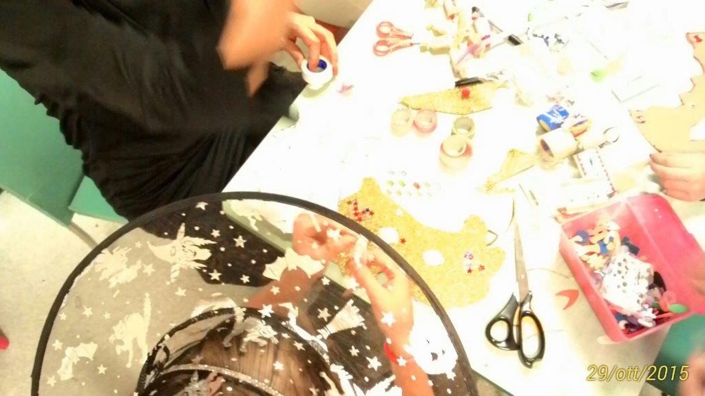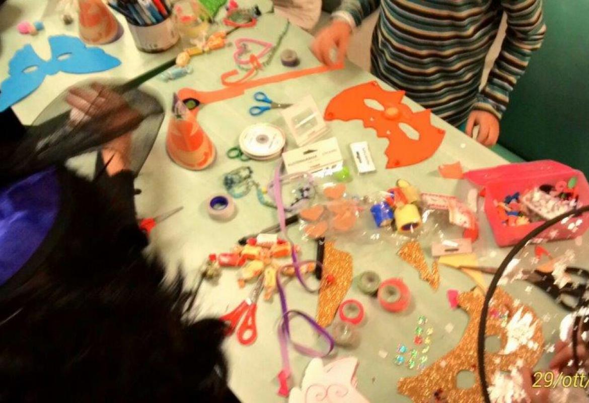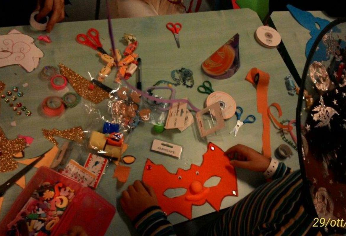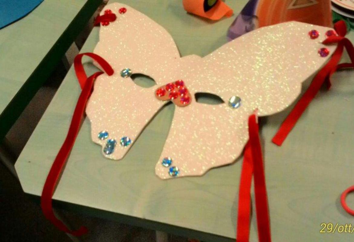 Ah, e pure le maschere paurose artigianali. Le abbiamo costruite noi con il pannolenci. Anche questa è ludoterapia!