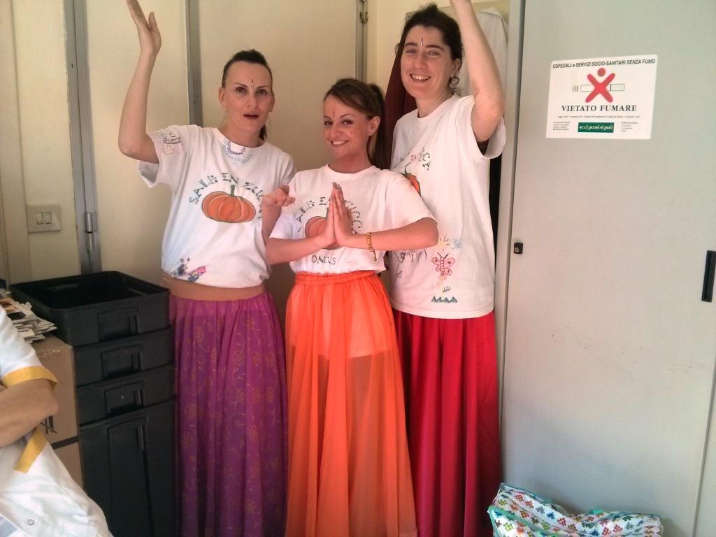 Ecco le feste Bollywood fatte questa settimana nel reparto di Ematologia Pediatrica del Policlinico Umberto I di Roma e a Residenza Vanessa, la casa famiglia che ospita i bambini in cura ad Ematologia quando sono in regime di day hospital. Vestite da principesse indiane le nostre ludoterapiste giocano anche a pallone!