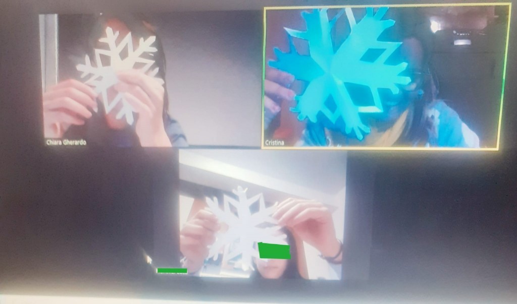 Continuano le attività di ludoterapia a distanza. Da ieri Chiara e Cristina, ludoterapiste, hanno imparato a realizzare fiocchi di neve di carta, grazie alla pazienza di due insegnanti super: C. e L., 8 e 10 anni. E dopo questo sforzo didattico, relax e chiacchiere con il calendario dell'Avvento