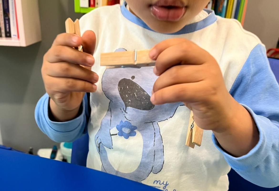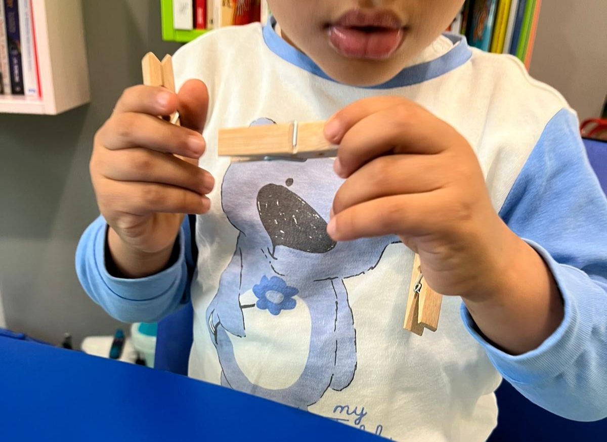 Lucrezia è stata al Gemelli per l'intervento di ludosport. Con A. e M. hanno allenato la prensione fine sfilando le mollette che Lucrezia gli appendeva alla maglietta, lanciato le palline nel cestino del colore corrispondente per potenziare la coordinazione oculomotoria e utilizzato entrambe le mani in modo da non tralasciare l’allenamento della mano non dominante. M. ha anche fatto dei passaggi (che ricordavano un po’ il calcio) con la palla. Una giornata intensa insomma!!!