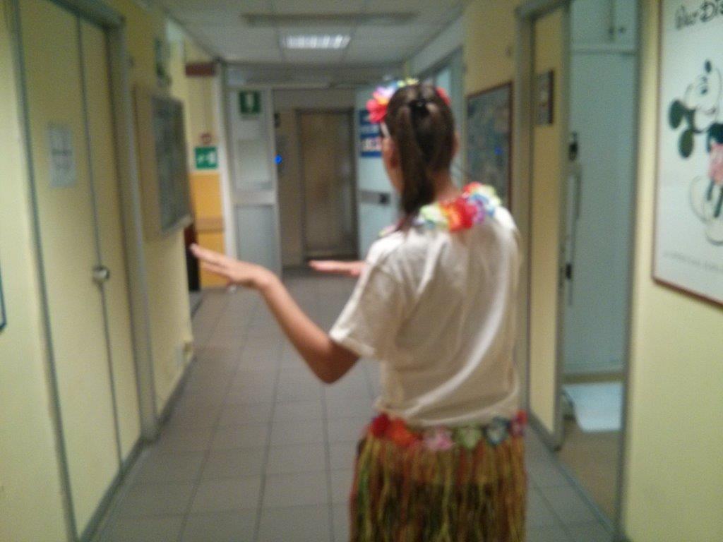 Giornata Hawaiana ieri ad Ematologia Pediatrica! Simpatiche bambine e le loro mamme hanno realizzato dei gonnellini coloratissimi, come quelli che vedete indossati dalle ludoterapiste. E una mamma ha salutato dicendo: "Questa sera li indossiamo e andiamo tutte a passeggio per il corridoio...". Aloha!