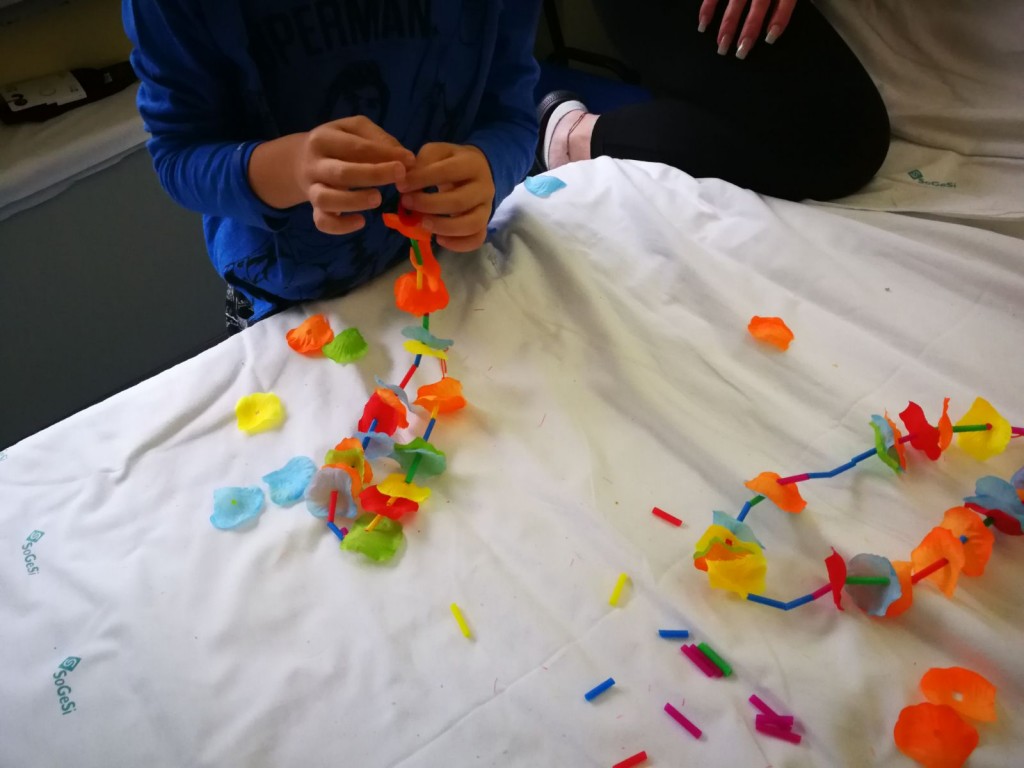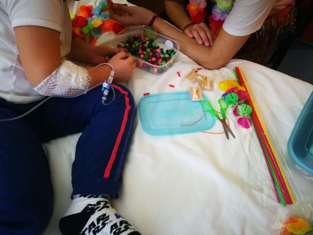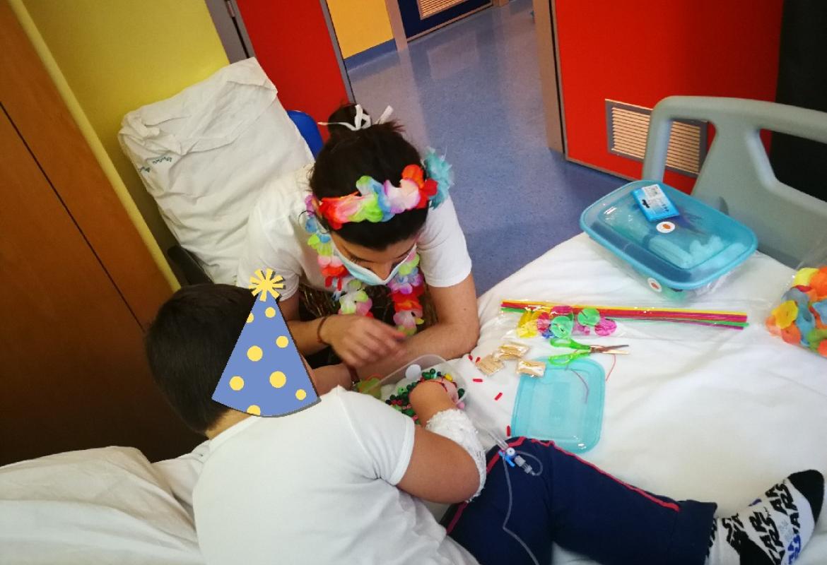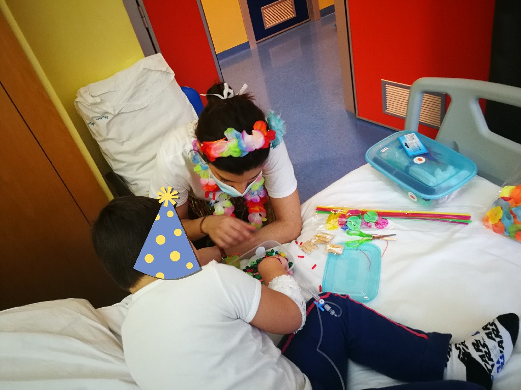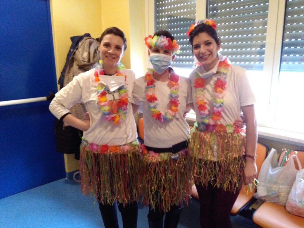 Dopo giorni e giorni di preparazione è arrivato, finalmente, GIOVEDI GRASSO! E abbiamo colto l'occasione per vestirci da hawaiane in reparto e ricoprire le stanze di petali colorati. Già, perché anche l'attività che abbiamo scelto riguardava le collane di fiori: le abbiamo costruite con cannucce, petali di stoffa e filo elastico, creando anche qualche bracciale e coroncina - oltre che i bambini, abbiamo così rallegrato anche le mamme e i papà! E se all'inizio andare in giro per i corridoi vestite per carnevale è stato un po' imbarazzante, alla fine non eravamo più le uniche e ci invidiavano persino i dottori!