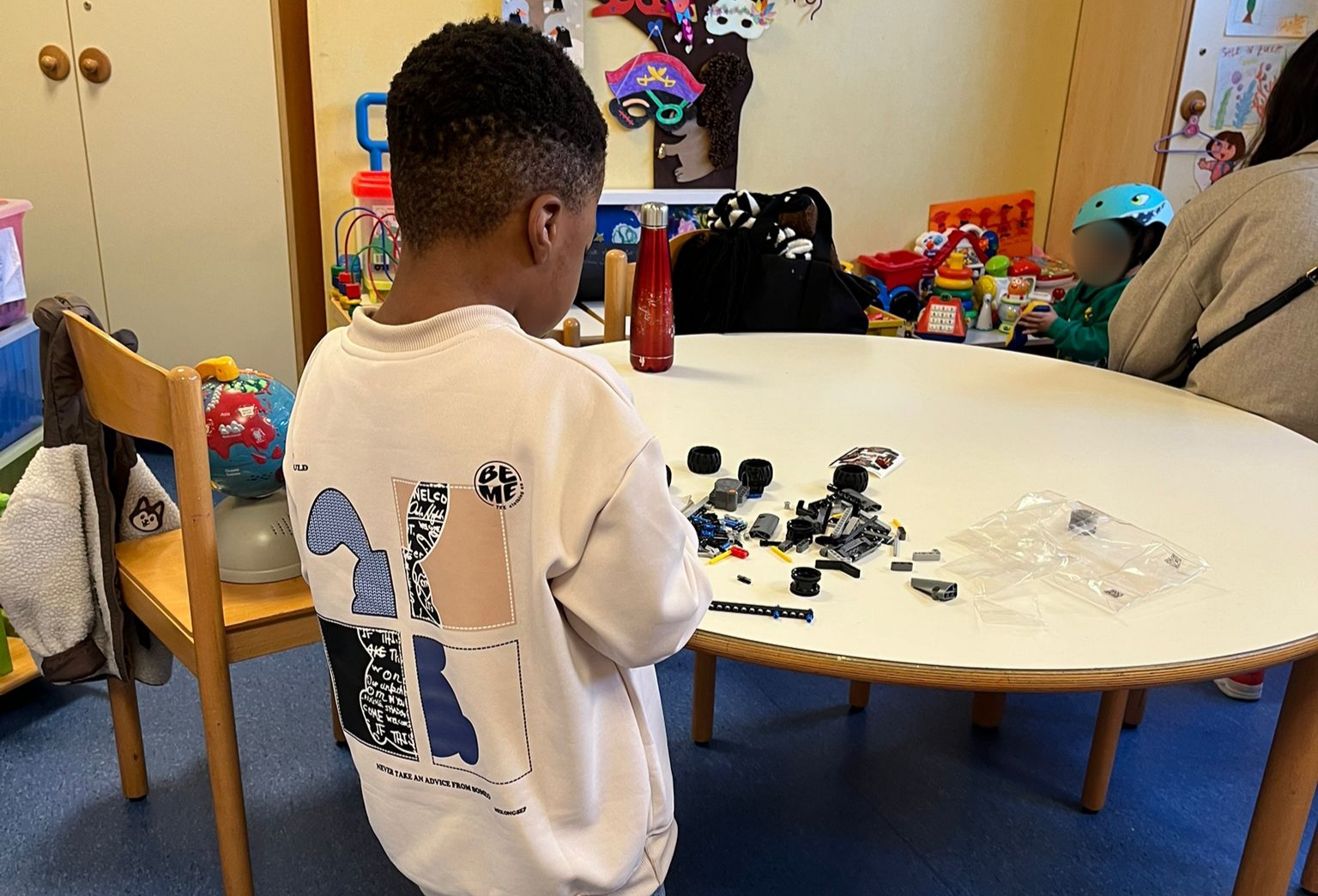 Oggi Lucrezia ha incontrato S., P., E., A. ed L., con cui sono abbondate le idee di gioco: plastilina, mappamondo, spade, giochi da tavola, carte di "mini family", cucina e libri, sono stati alcuni degli strumenti usati oggi per animare di divertimento la Sala Giochi!