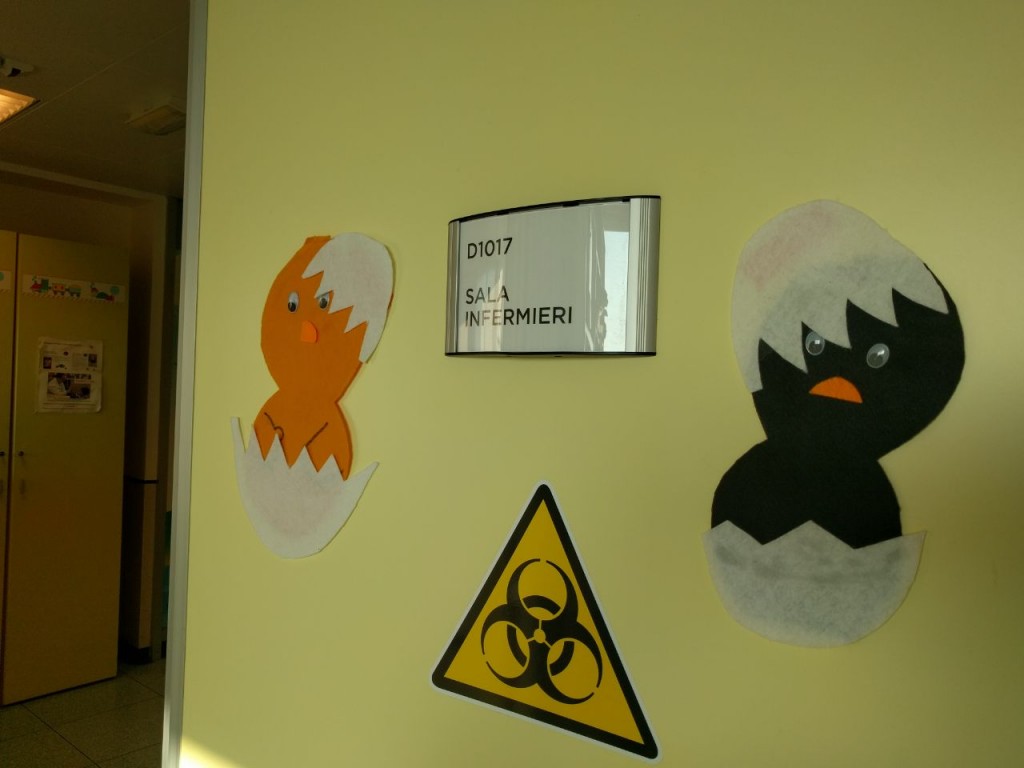 Ci credereste mai? Il reparto di oncologia pediatrica del policlinico Gemelli è stato preso d'assedio! Un sacco di simpatici pulcini colorati, tutti di cartoncino, sono improvvisamente spuntati nel reparto, per la gioia di grandi e piccini. Non capita spesso, succede solo quando ci siamo noi! Ringraziamo la onlus Lollo10 per il sostegno all'iniziativa.