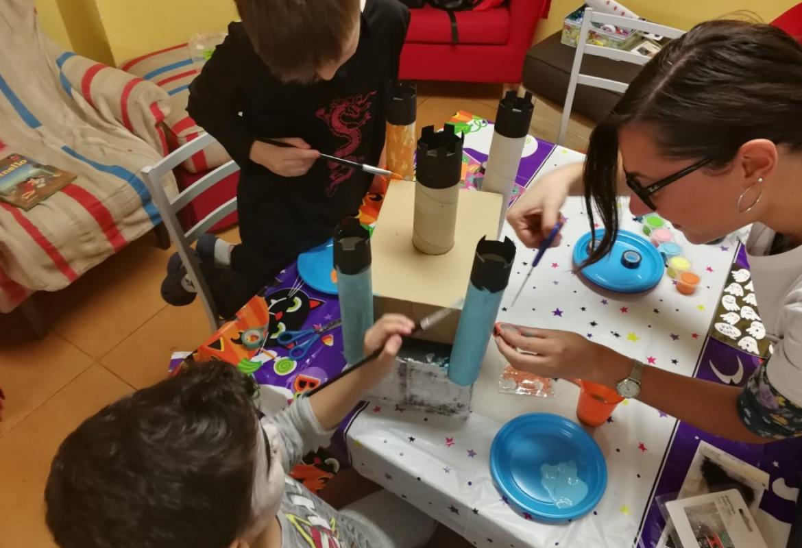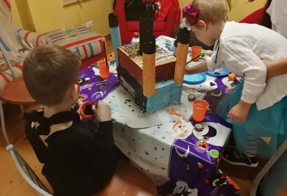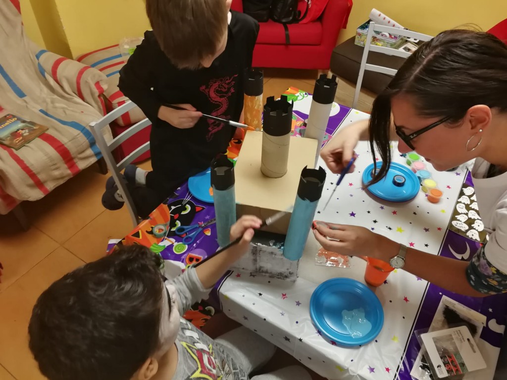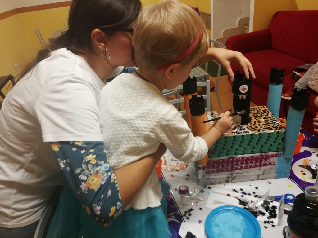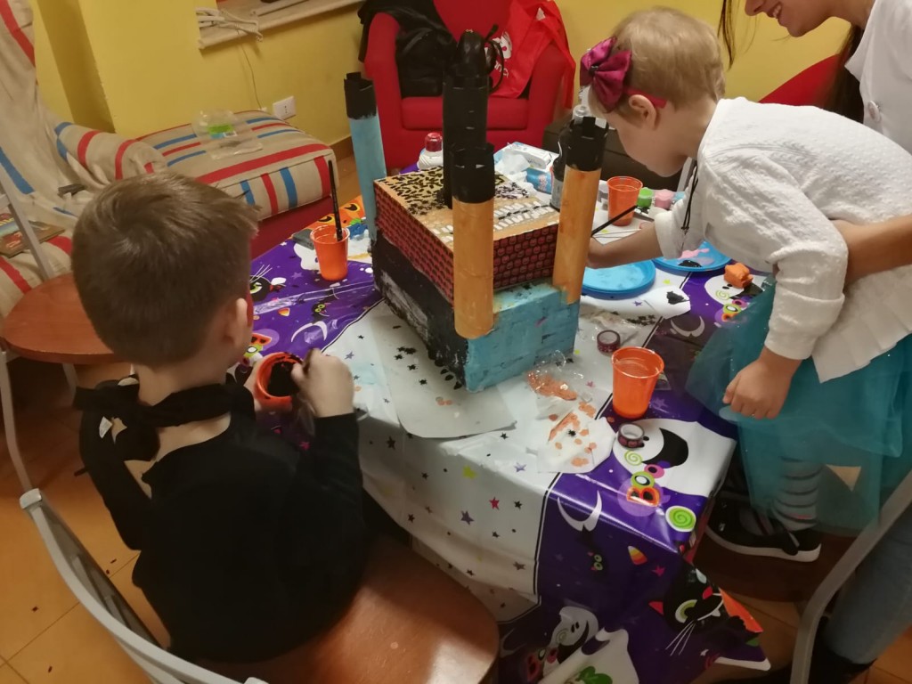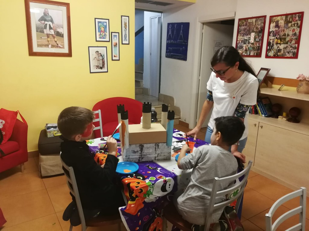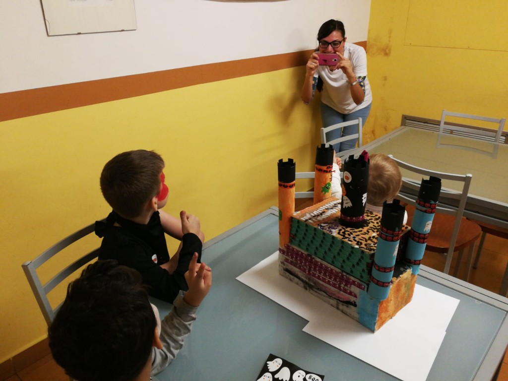 Nel pomeriggio di domenica, ci siamo recate alla Residenza Vanessa con un obiettivo ben preciso : fare dei preparativi per Halloween, divertendoci insieme ai piccoli! Appena arrivati, siamo stati accolti da bimbi già entrati perfettamente nel clima della festa, tutti truccati da super mostriciattoli! Abbiamo proposto di decorare insieme un castello e l'idea é stata accolta con entusiasmo! E così i bambini hanno liberato tutta la loro creatività, le loro emozioni ed i loro pensieri...E tra rotoli di cartone, pittura con la tempera, scotch, adesivi, zucche, pipistrelli, ragnetti, streghe, fantasmi e chi più ne ha, più ne metta...Ne é uscito fuori un meraviglioso (e pauroso) castello di Halloween! Ed una volta salutati i bambini, la sensazione è quella che il tempo sia volato e che l'obiettivo iniziale sia stato pienamente raggiunto!