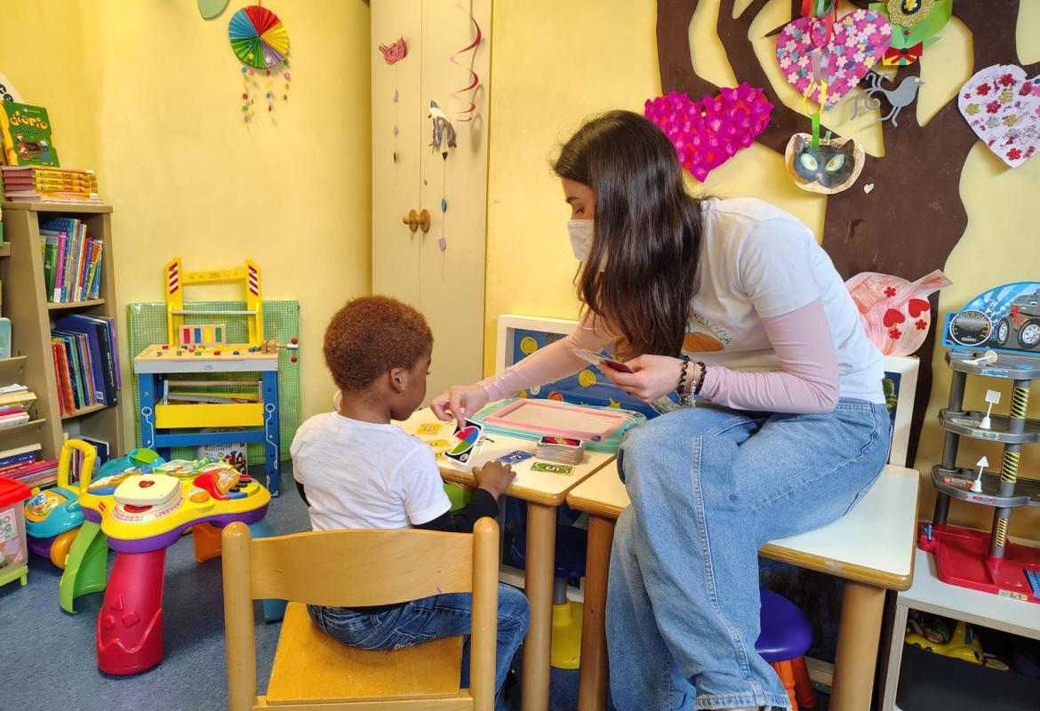 Nhamhiria ed Ester hanno incontrato tanti bambini oggi! Con tutti hanno svolto attività varie,dai giochi da tavolo ai disegni…Alcuni di loro non capivano l'italiano, ma quando si gioca si trovano altre vie per mettersi in contatto e divertirsi insieme!