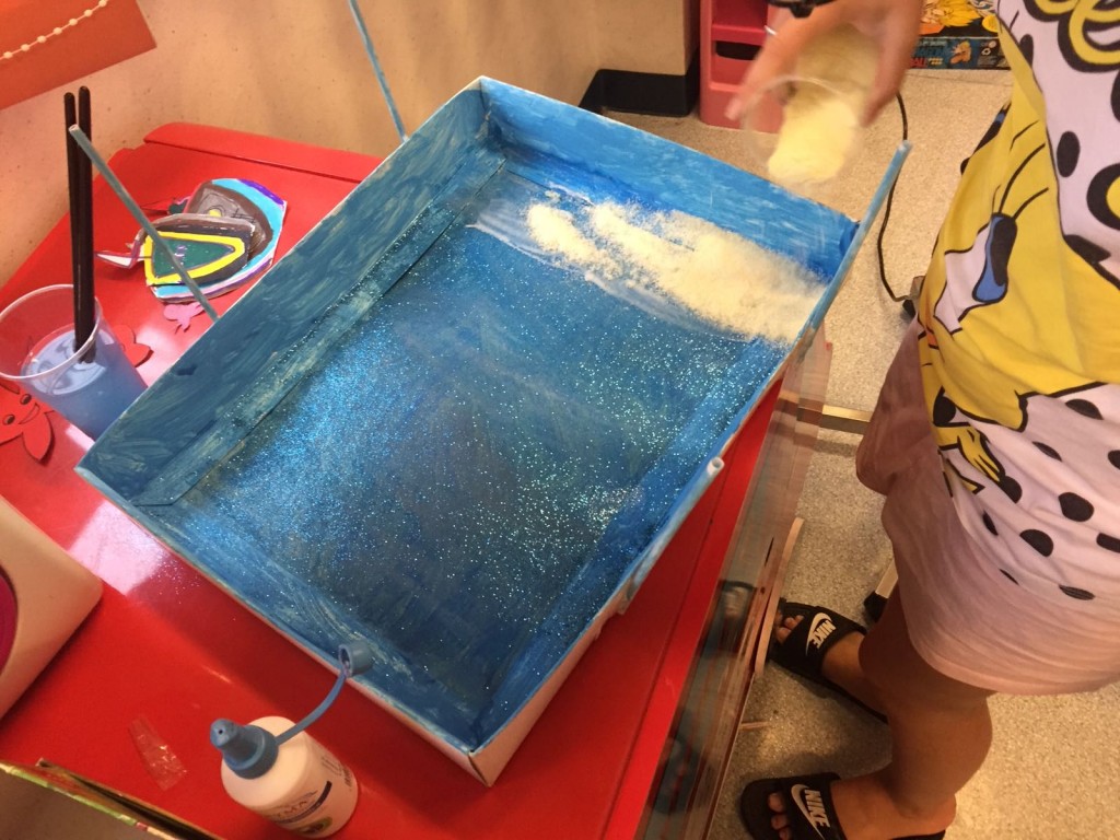 E' agosto, fa caldo, vanno tutti in vacanza. E chi non può, come i nostri amici di Neurochirurgia Infantile? Niente paura, ci pensiamo noi. Non possono andare al mare? E allora noi portiamo il mare da loro! Con cartoncino, glitter, colori, forbici e tanta fantasia abbiamo ricostruito un fantastico ambiente marino, con tanto di faro, per i bambini meno fortunati. E, bisogna dirlo, già fa meno caldo!