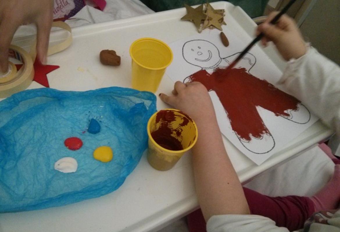 Le attività natalizie di ludoterapia nel reparto di Ematologia Pediatrica del Pol. Umberto I di Roma sono state realizzate grazie al progetto "Il Sabato del Villaggio - Fuori e Dentro le Mura" dell'Otto per Mille della Tavola Valdese, nei reparti di Neurochirurgia Infantile e Oncologia Pediatrica del Pol. Gemelli di Roma grazie a Arteliberatutti, 1caffè Onlus