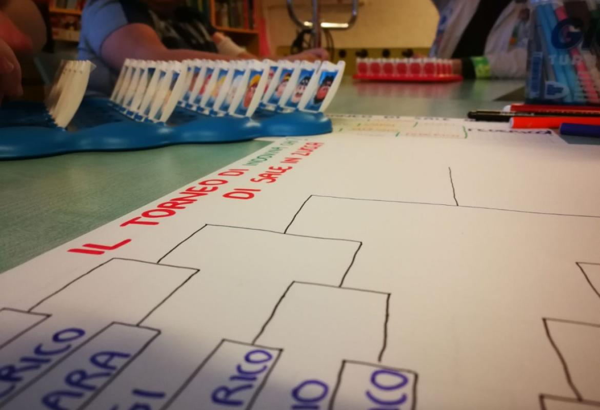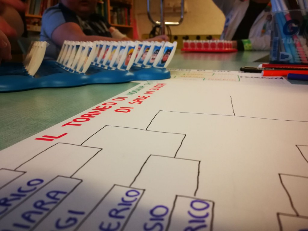 Dopodiché sono iniziate, serrate, le sfide; il nostro ludoterapista Luigi sembrava in netto vantaggio, ma poi non è arrivato neppure in semifinale. Per fortuna un papà è giunto con la merenda a rinnovare l'energia degli atleti. È così, tra un "porta gli occhiali?" e qualche irregolarità, abbiamo decretato il vincitore. "È Saaaam???!" No! È Federico!