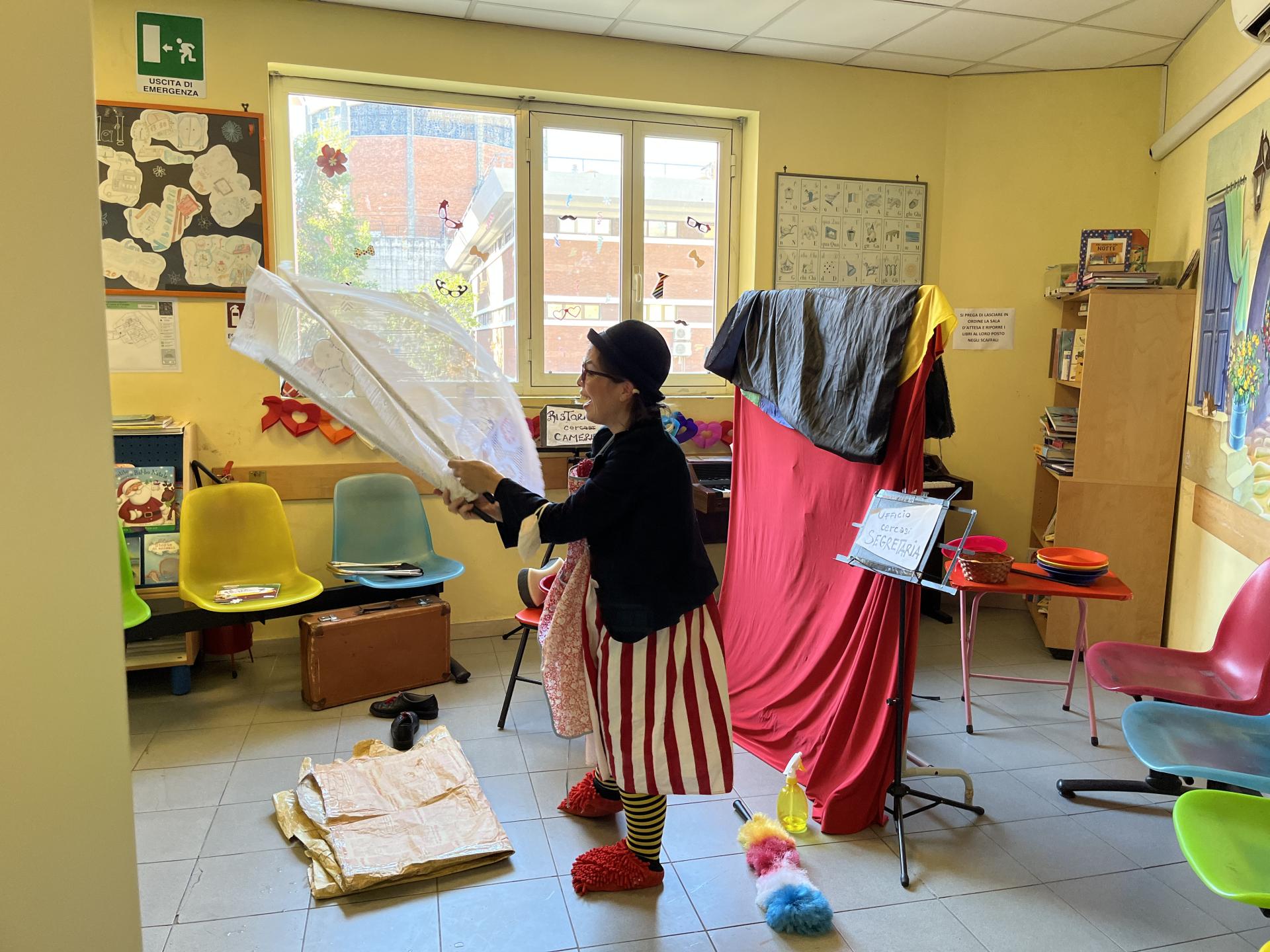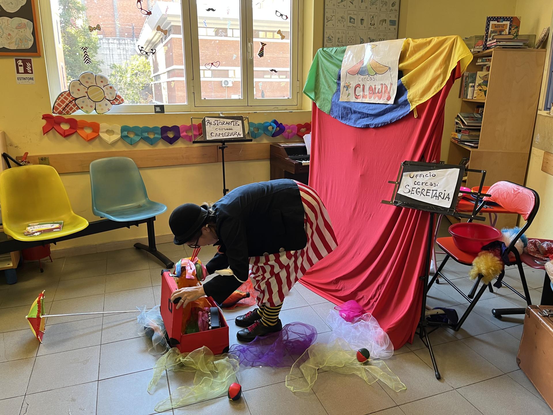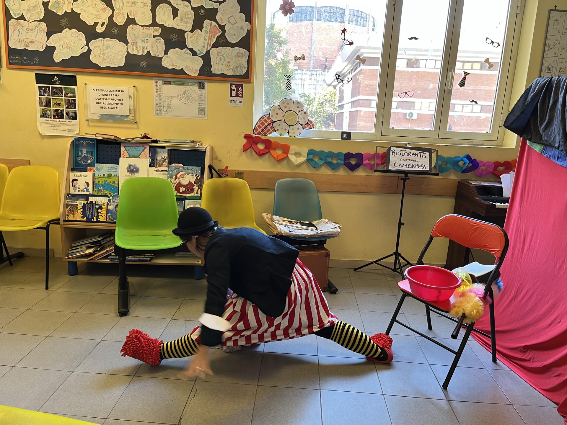Cosa ci fanno insieme una un pagliaccio con una cuffietta per la doccia, una coccinella e un’aspirante giocoliera? Portano il Carnevale nel reparto di Ematologia del Policlinico Umberto I naturalmente! Insieme ai bambini e alle bambine presenti hanno trovato il giusto impiego ad una buffa ragazza in cerca di occupazione: il posto più adatto a lei si è rivelato essere proprio il circo, dove potrà dimostrare la sua creatività tra gli applausi e le risate che, anche oggi, sono stati la musica migliore sentita nel corridoio di Ematologia!