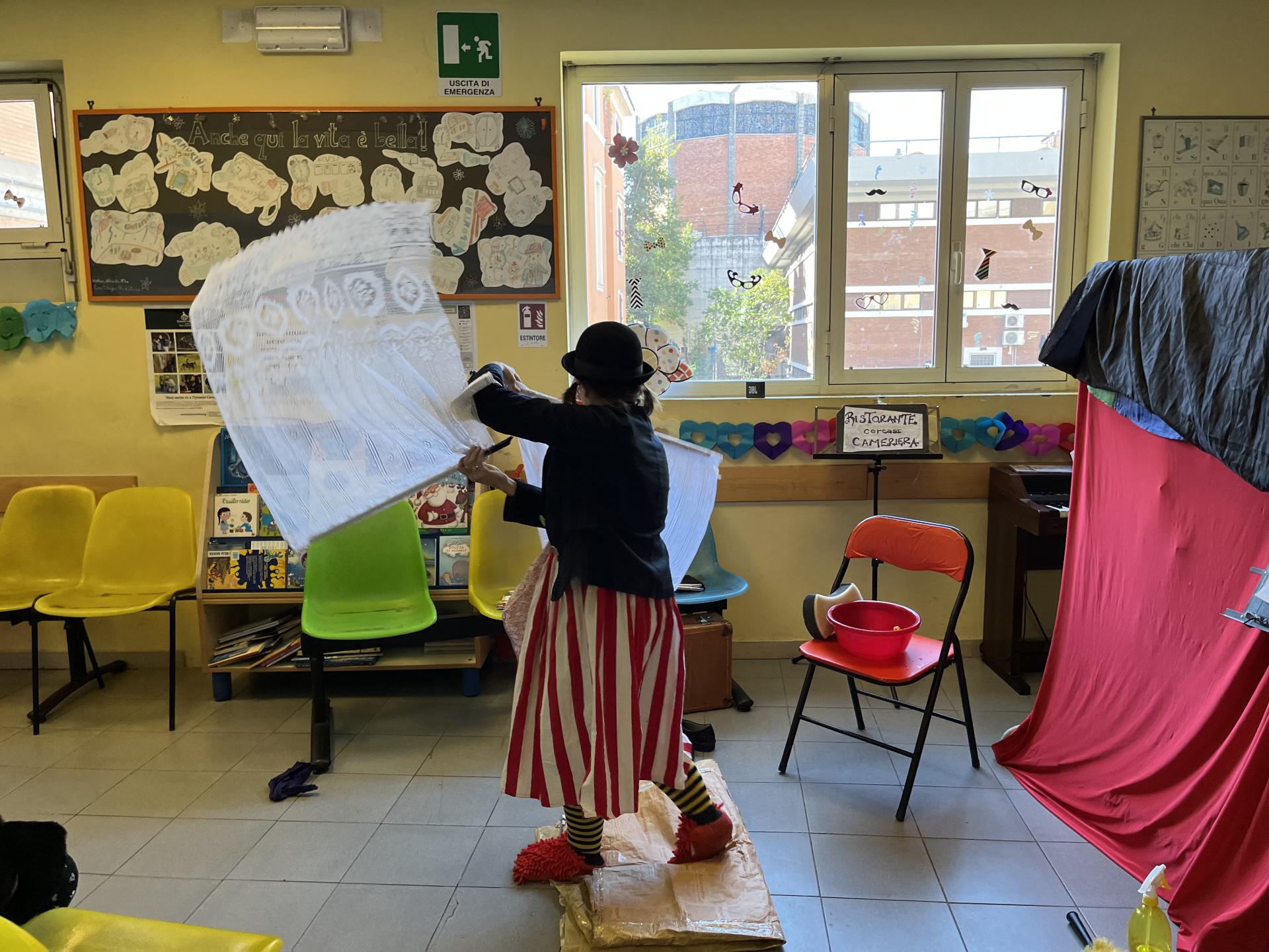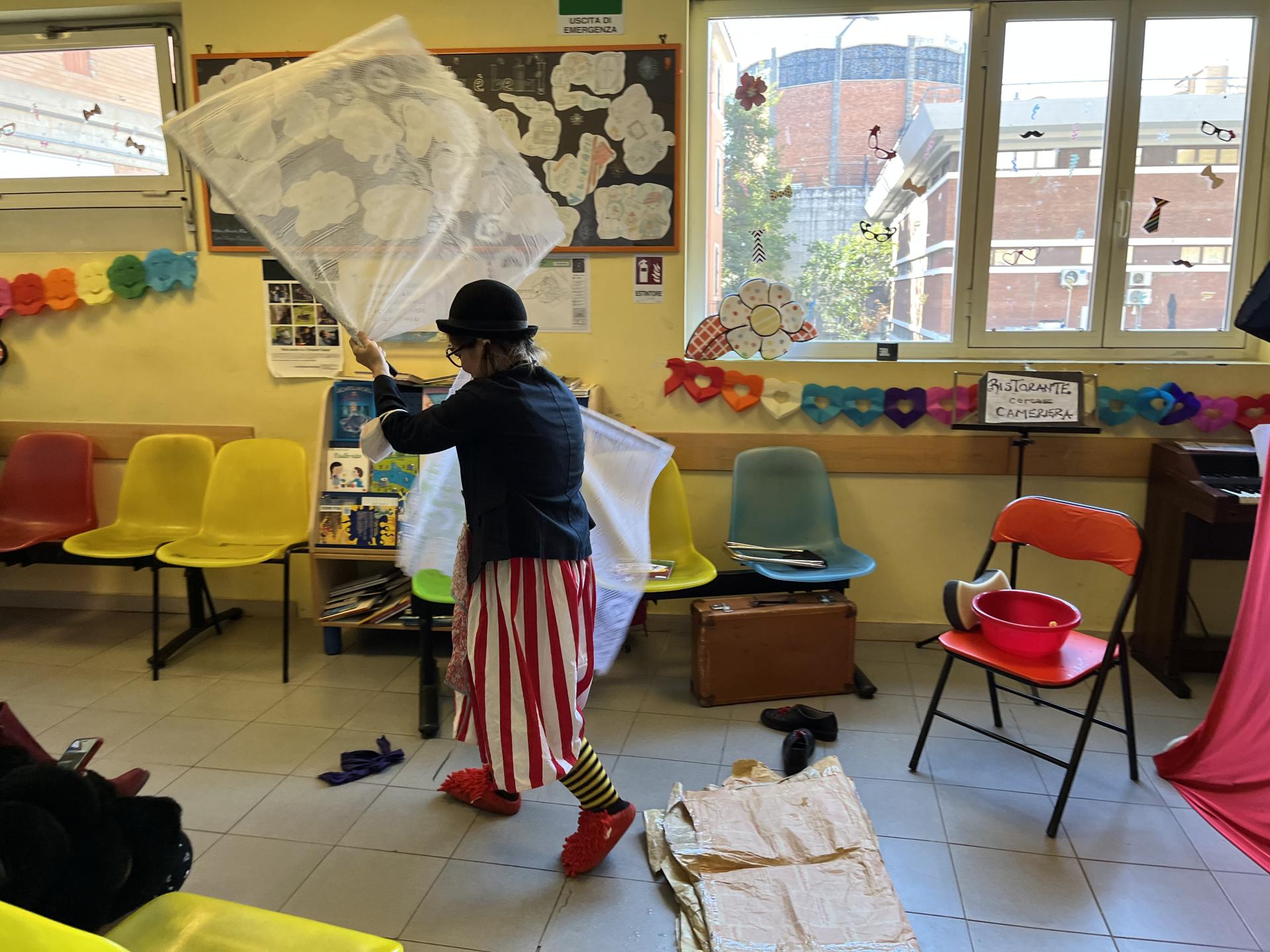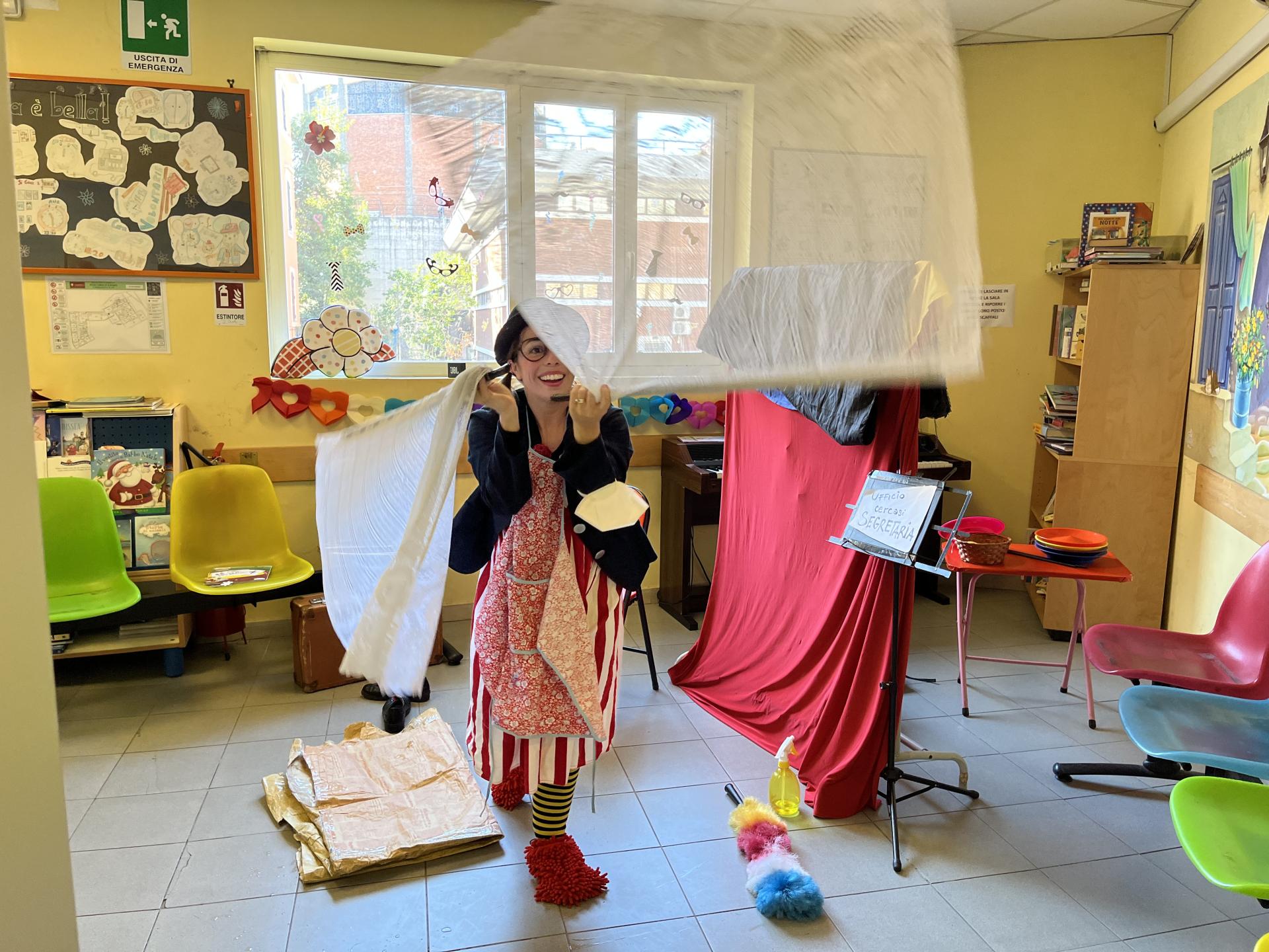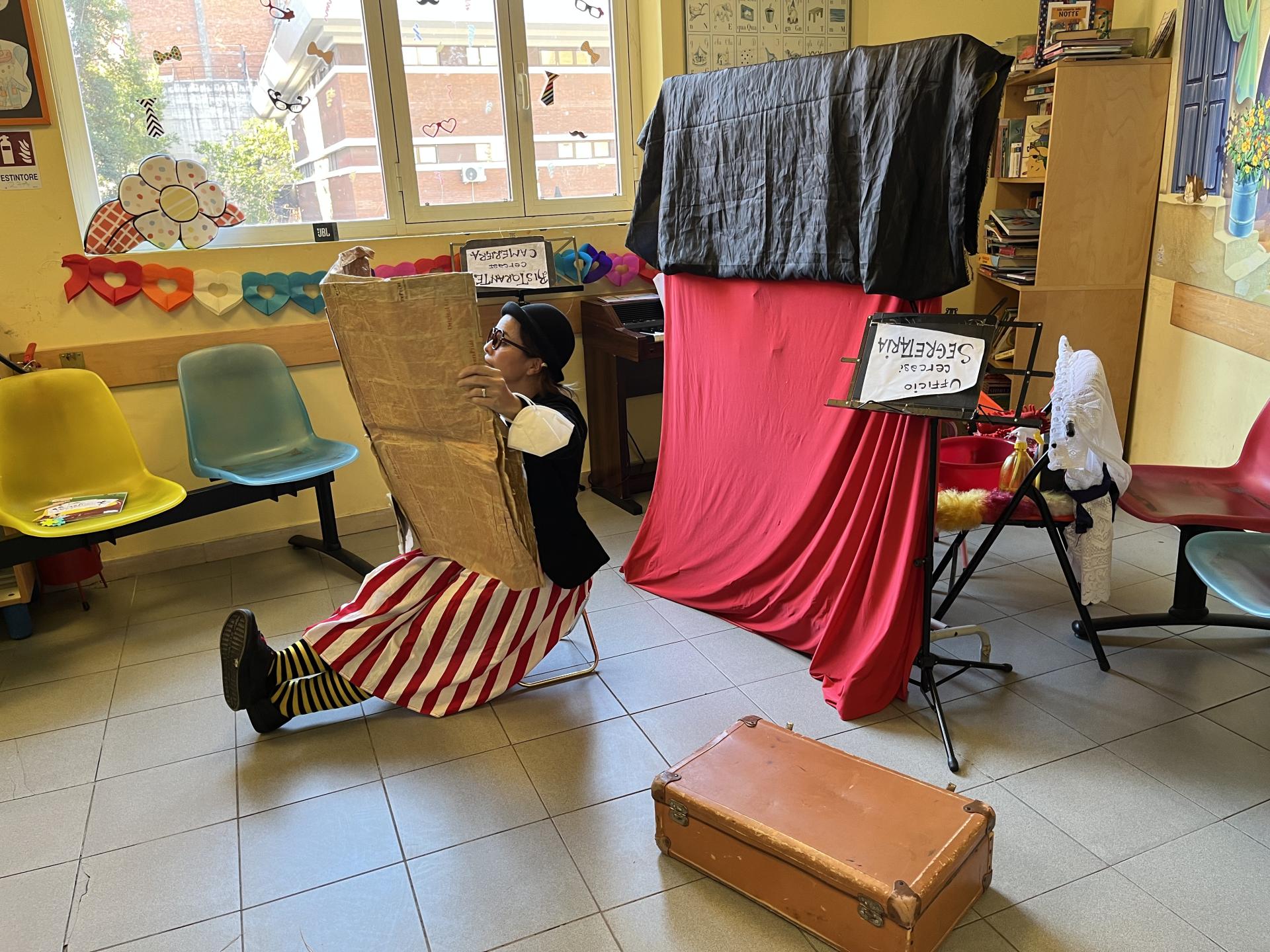 Cosa ci fanno insieme una un pagliaccio con una cuffietta per la doccia, una coccinella e un’aspirante giocoliera? Portano il Carnevale nel reparto di Ematologia del Policlinico Umberto I naturalmente! Insieme ai bambini e alle bambine presenti hanno trovato il giusto impiego ad una buffa ragazza in cerca di occupazione: il posto più adatto a lei si è rivelato essere proprio il circo, dove potrà dimostrare la sua creatività tra gli applausi e le risate che, anche oggi, sono stati la musica migliore sentita nel corridoio di Ematologia!