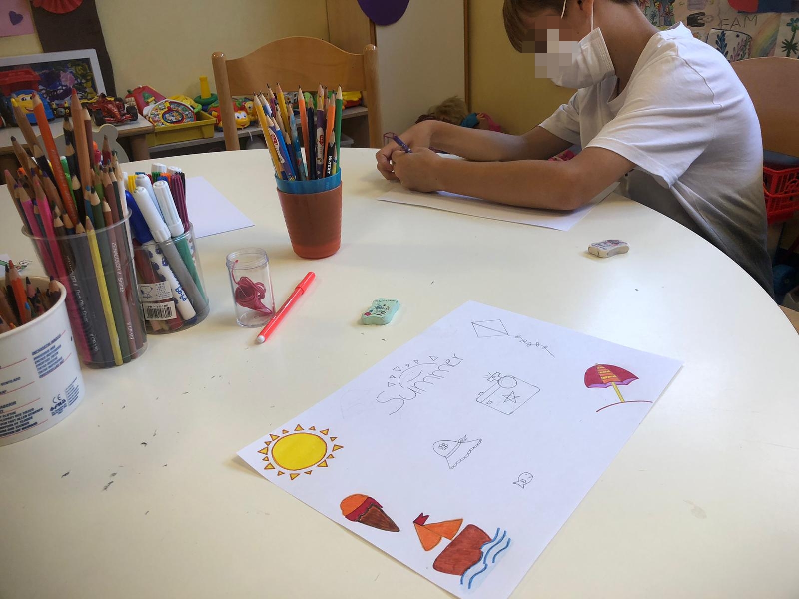 Virginia e Valentina si sono recata al Day Hospital di Ematologia del Policlinico Umberto I dove hanno fatto dei disegni a tema mare.