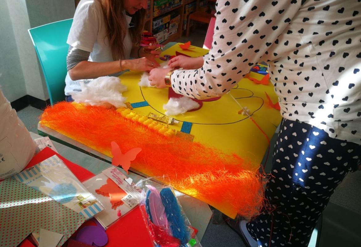 È ormai è tradizione. la gallina Pia, di tutto punto abbigliata, è venuta a far visita agli amici bambini per l'ultimo week end prima di Pasqua. E subito il suo colore ha trionfato e riempito tutte le stanze. E' successo ad Oncologia Pediatrica. L'attività è stata realizzata in autofinanziamento.