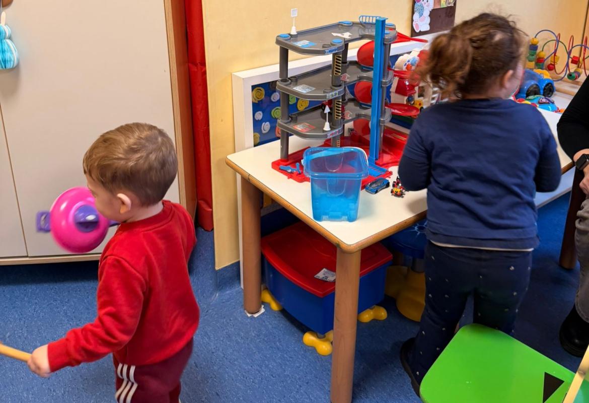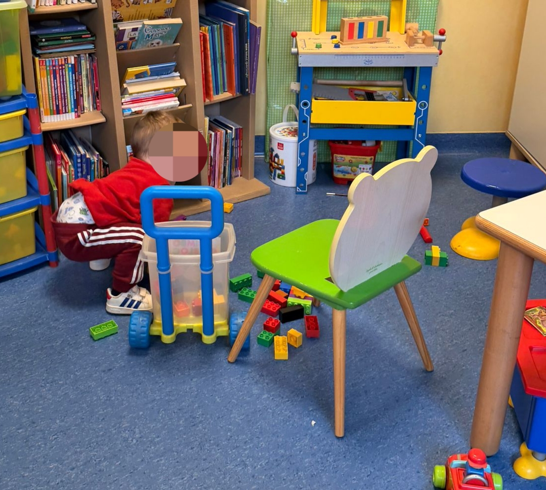 Oggi Angelica ha incontrato tanti bimbi e bimbe in Ematologia: insieme hanno disegnato, fatto attività creative, giocato a fare la spesa, costruzioni e macchine.