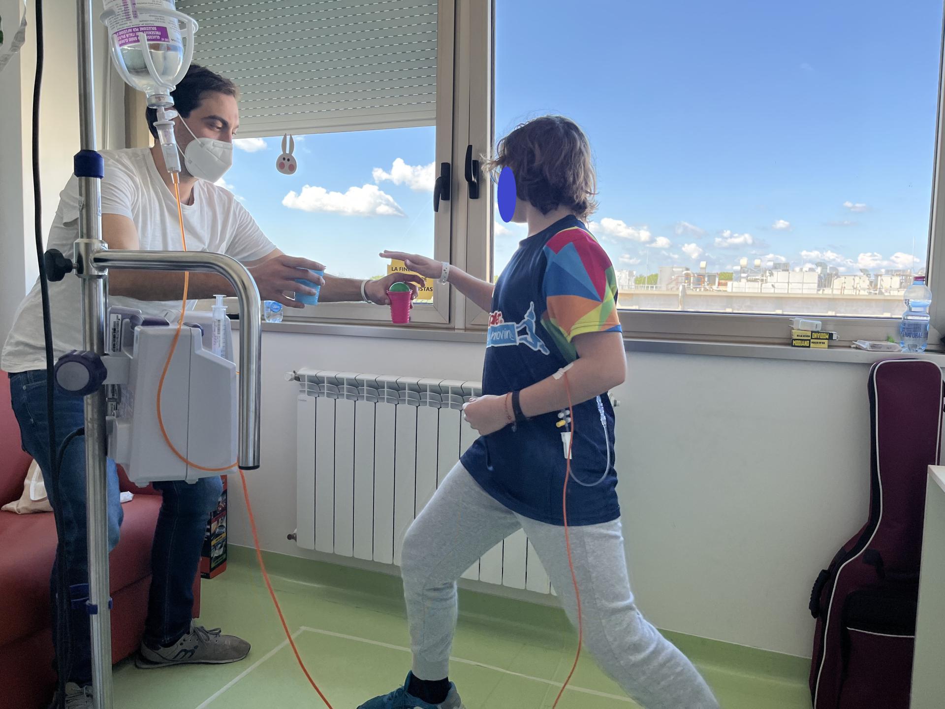 Mercoledì mattina Lucrezia e Leonardo sono stati nel reparto di Oncologia Pediatrica del Policlinico Gemelli per svolgere il terzo incontro di Ludosport! Hanno incontrato due preadolescenti. Con l’energico E. hanno creato un intervento su misura, riproducendo i movimenti tipici della scherma, a lui molto familiari! Con E., invece, hanno lavorato sulla coordinazione oculomotoria e l’equilibrio. Le risate non sono mancate, come sempre!