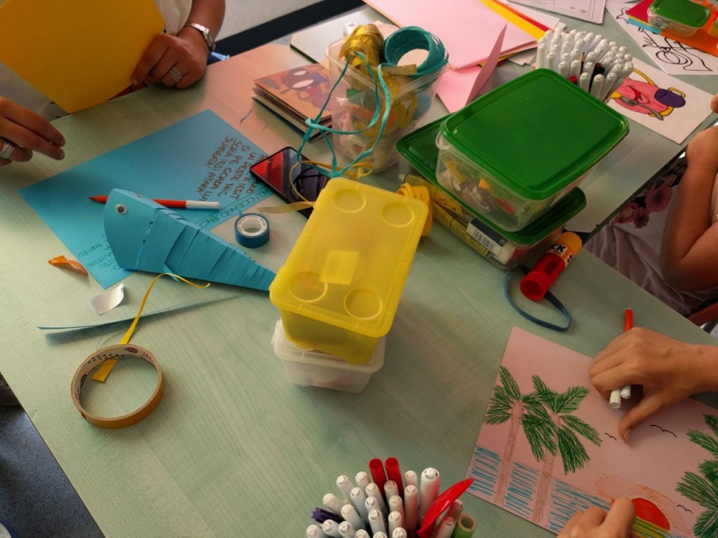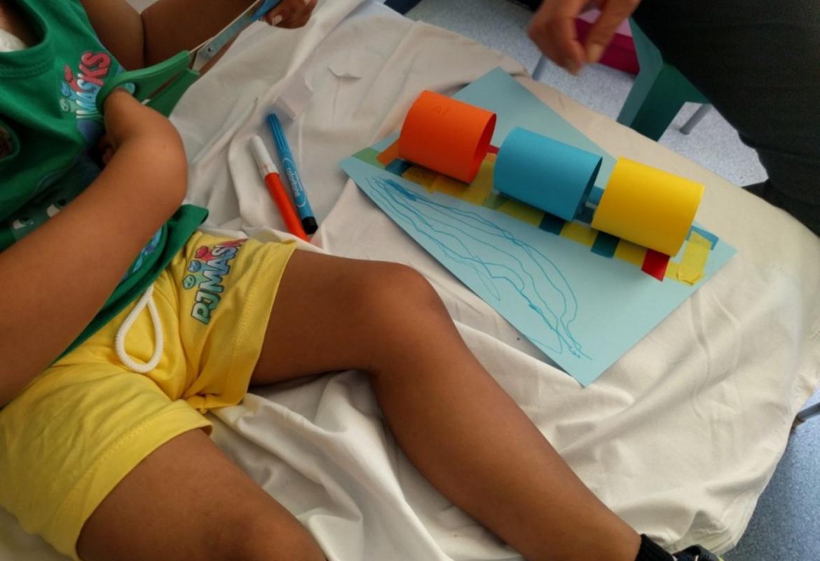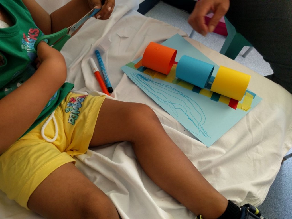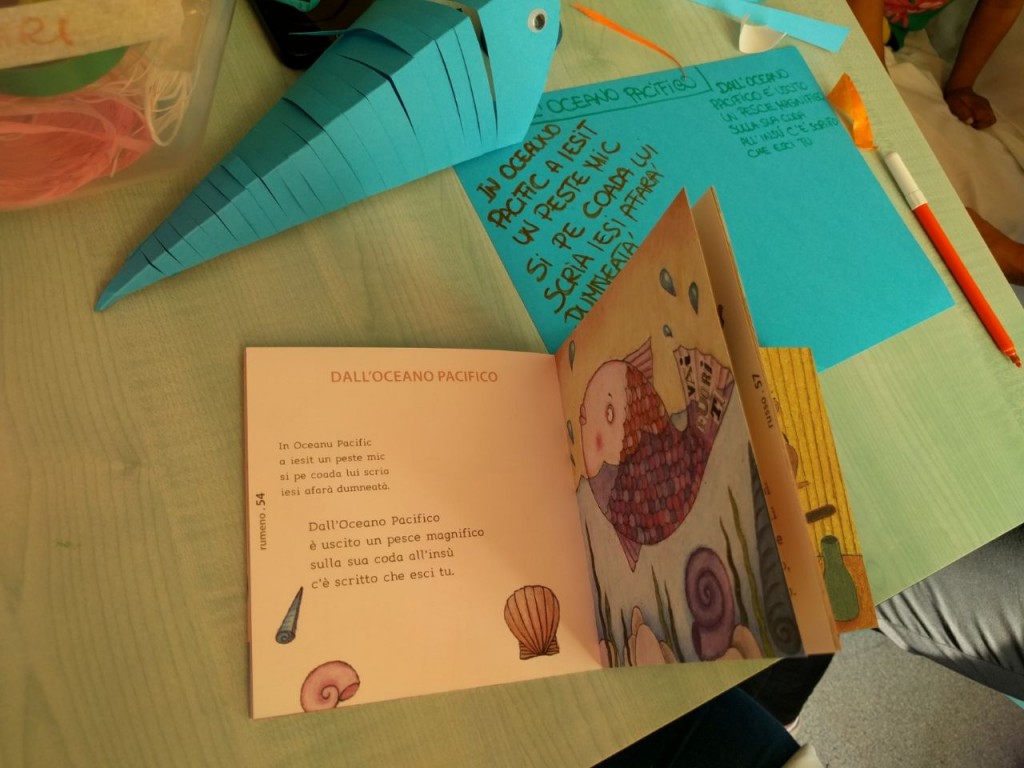 La storia bilingue dell'oceano, con tanto di pesce costruito con il cartoncino, è servito proprio a questo, ed abbiamo "conquistato" la fiducia di una piccola ospite che non parla la nostra lingua. Con gli altri, abbiamo costruito un treno, disegnato un tramonto, affibbiato nomi buffi al alcuni personaggi. E' stato un sabato pomeriggio davvero pieno di soddisfazioni!
