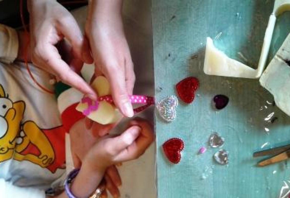 Abbiamo realizzato nel reparto di oncologia pediatrica un laboratorio di creazione e decorazione di saponette. I bambini che hanno potuto partecipare sono stati pochi perchè la situazione in reparto era particolarmente difficile.