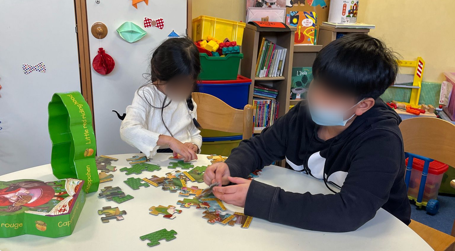 Oggi le attività che Lucrezia ha fatto con i bambini della Sala Giochi sono state varie: puzzle, disegni, creazione braccialetti, costruzioni, sfida di spade, minifamily, cucina,giusto per citarne qualcuna. È sempre bello vedere come i bambini manifestino tutte le sfumature della loro creatività!