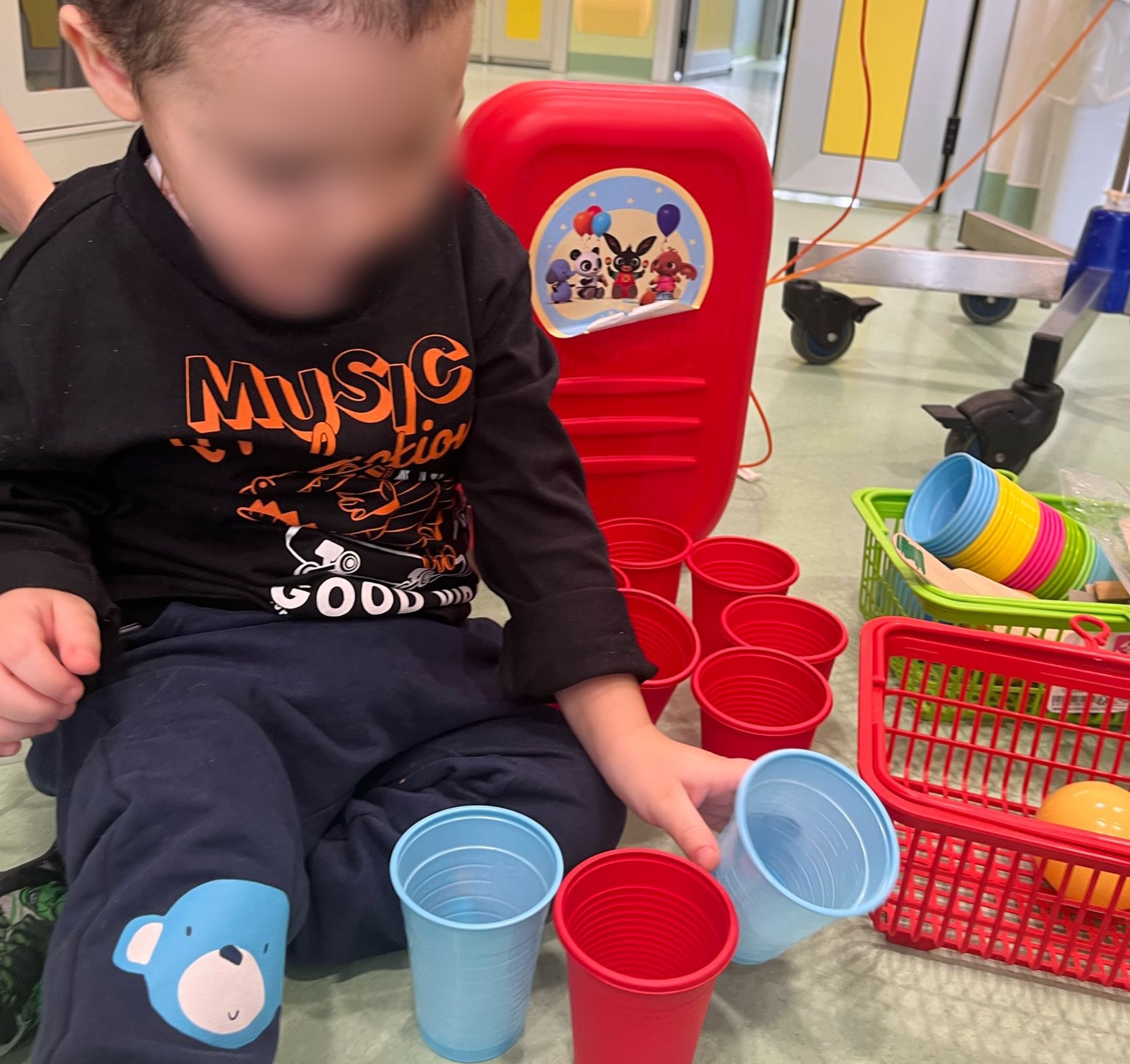 A Ludosport Lucrezia ha incontrato G., un bambino di 2 anni che ha da poco subito un intervento. Seguendo i consigli della fisioterapista, Lucrezia ha proposto delle attività che permettessero a G. di riattivare il tono muscolare:giochi e esercizi con le palline, le stecchette e i bicchieri che richiedessero l'alzata dalla sediolina per riabituarsi a questo tipo di movimento.
