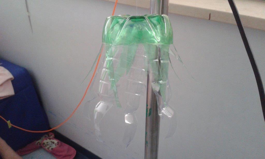 Le foto si riferiscono al laboratorio di riuso creativo "meduse da una bottiglia", condotto nei reparti di Oncologia Pediatrica e Neurochirurgia Infantile del Policlinico Gemelli (Progetto Sorridi in Ospedale Ludoterapia finanziato da Roma Capitale).