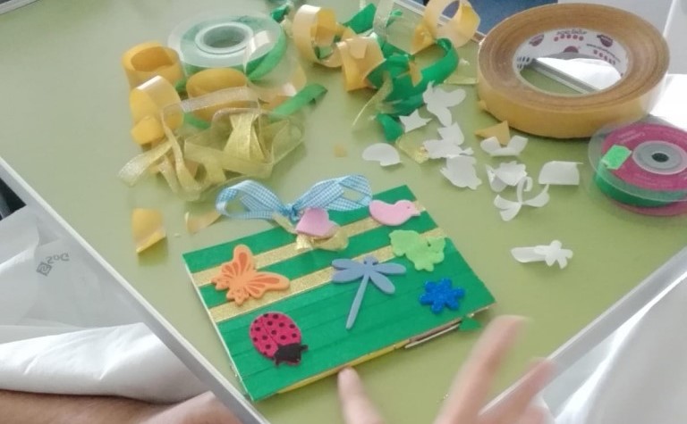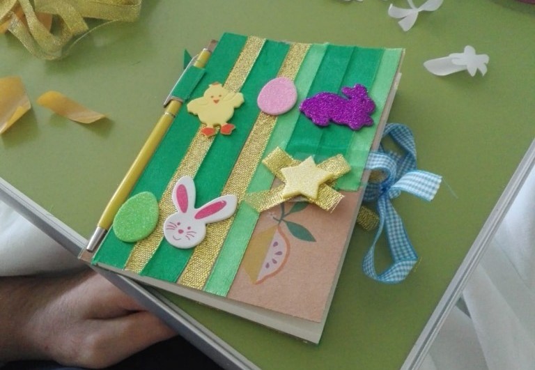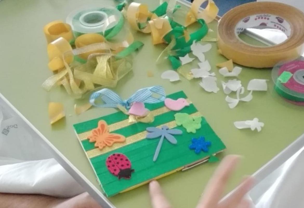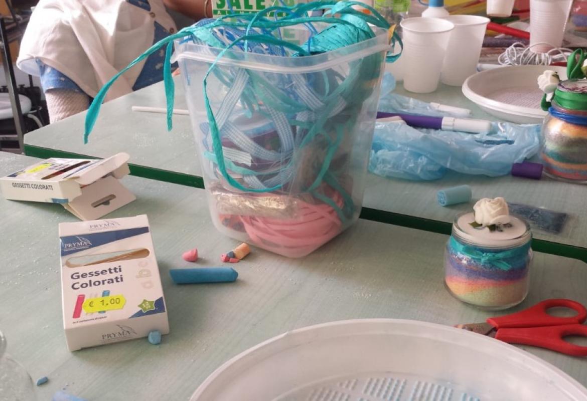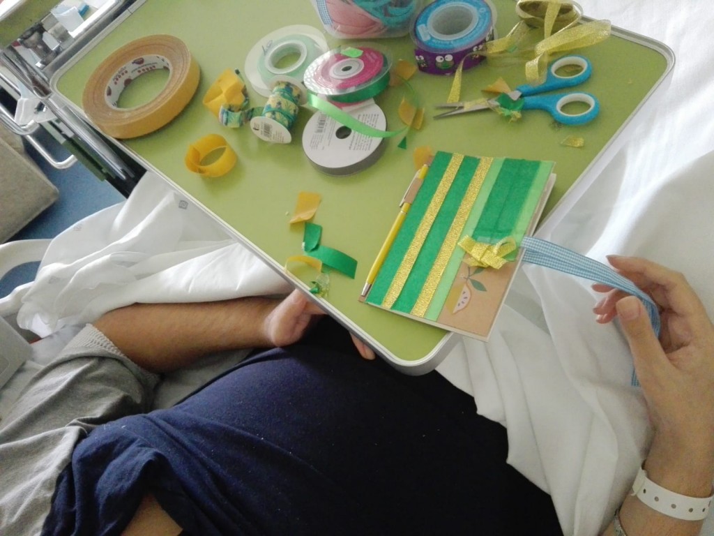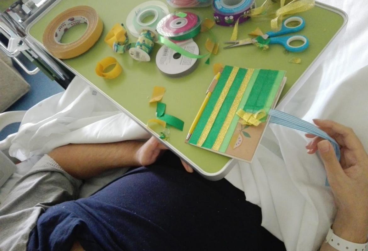 Così accogliamo gli altri bimbi dell’oncologia, tutti insieme coloriamo il sale con varie tecniche come se non ci fosse un domani! Nell’isolamento Chiara va da E. Insieme decorano e colorano il diario segretissimo!