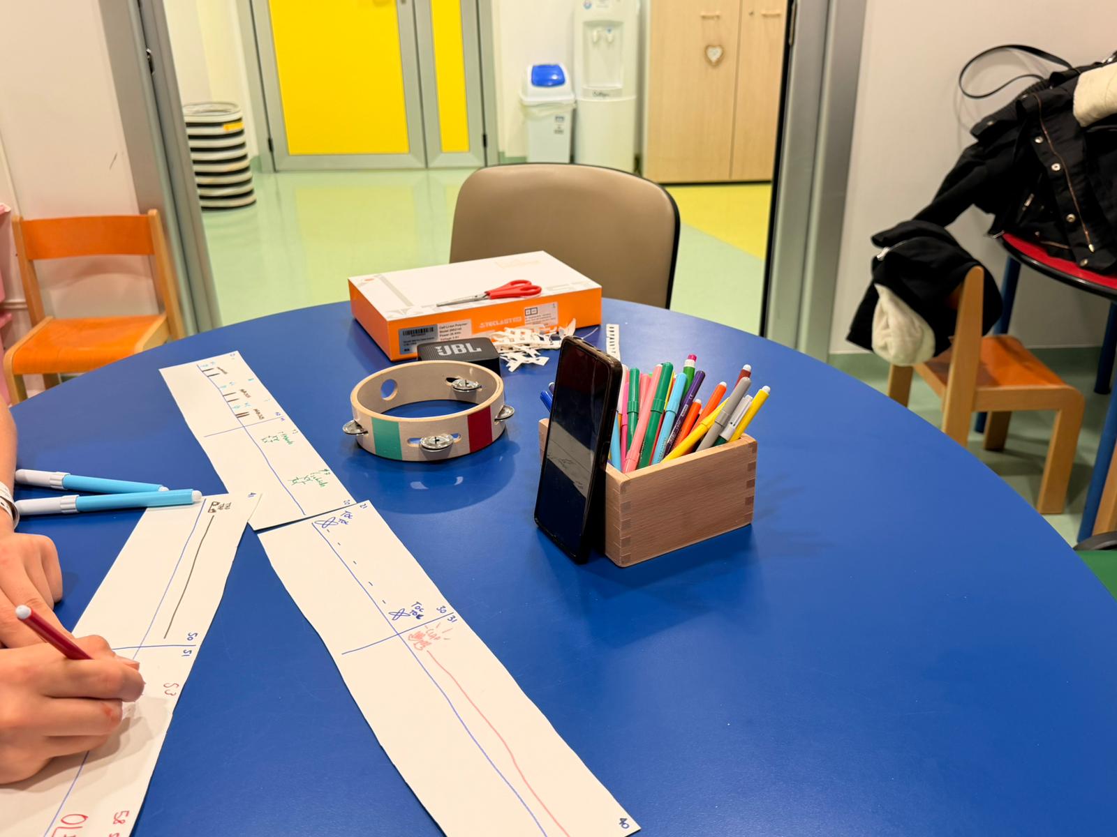 Erika e Angelica hanno svolto l'attività di musicoterapia insieme a A.,con cui si sono messi alla scoperta del suono, delle emozioni e dello stare insieme attraverso la musica!