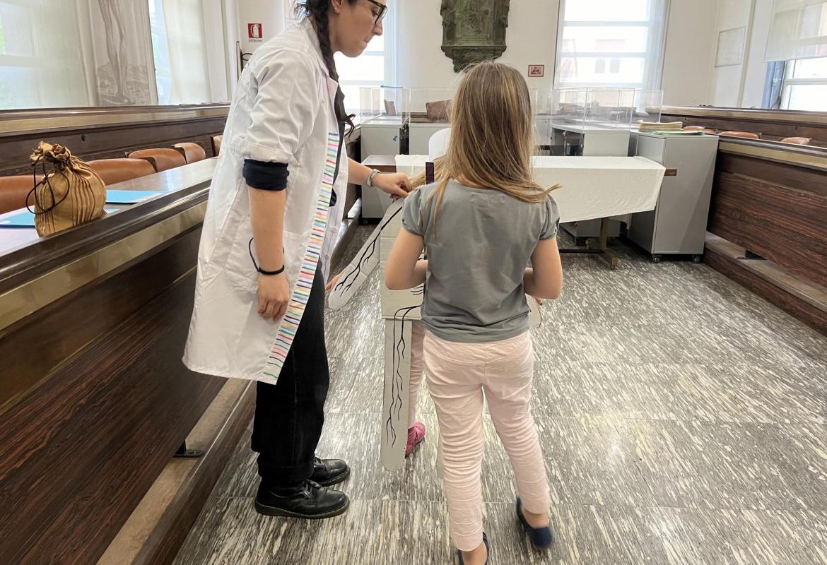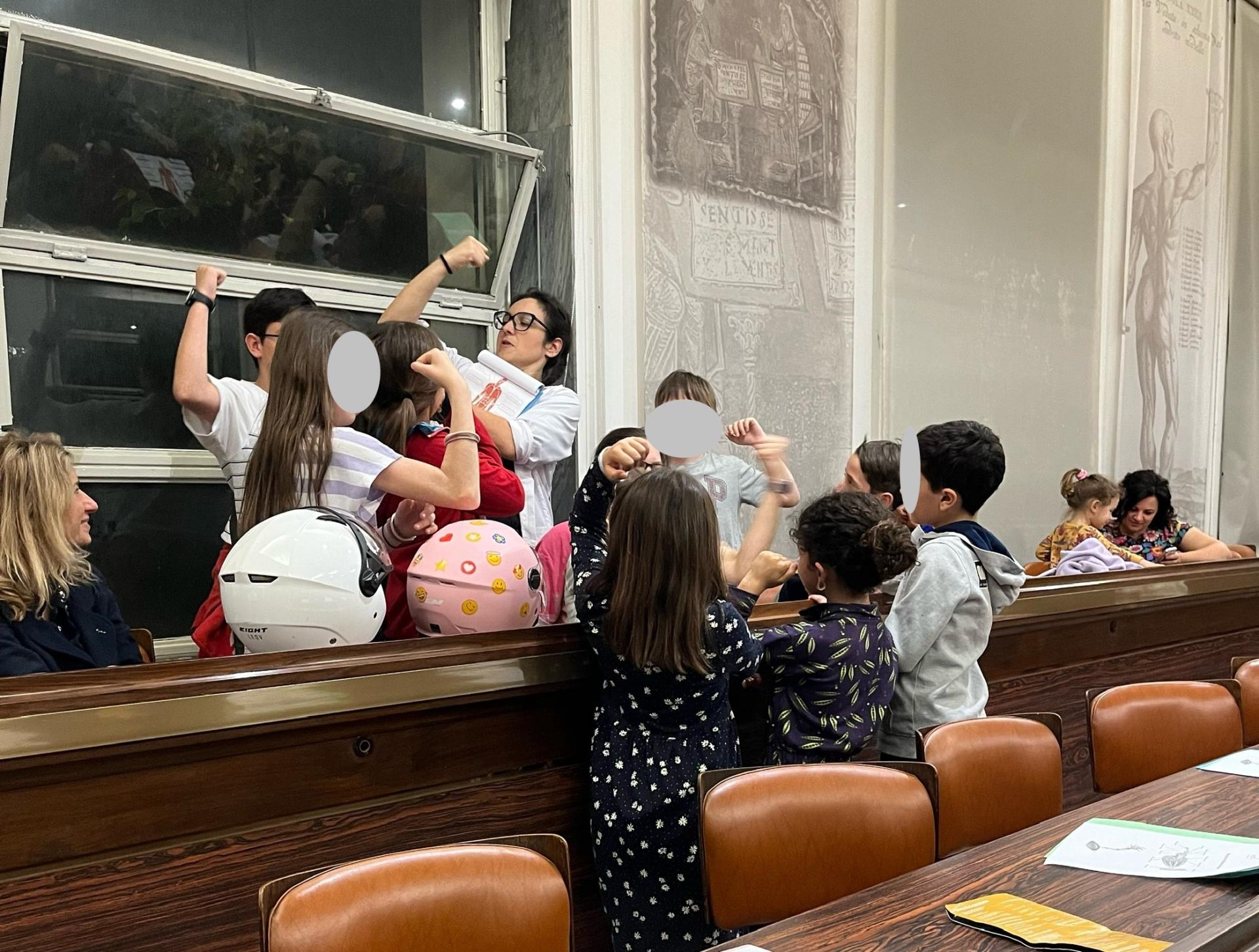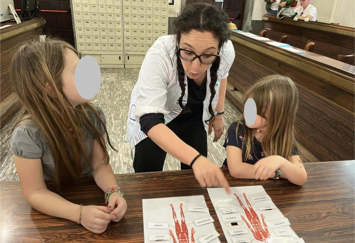 Sabato 18 maggio 2024 in occasione della Notte dei Musei, il laboratorio di Sale in Zucca è stato ospitato dal Museo di Storia della Medicina. Un turno dopo l’altro sono arrivati dottorini e dottorine ed insieme abbiamo esplorato l’apparato muscolare e il sistema nervoso, divertendoci nei giochi e immergendoci in simpaticissimi esperimenti! Come sempre, oltre ad aver imparato tantissime cose nuove sul corpo umano, abbiamo collaborato e ci siamo divertiti!