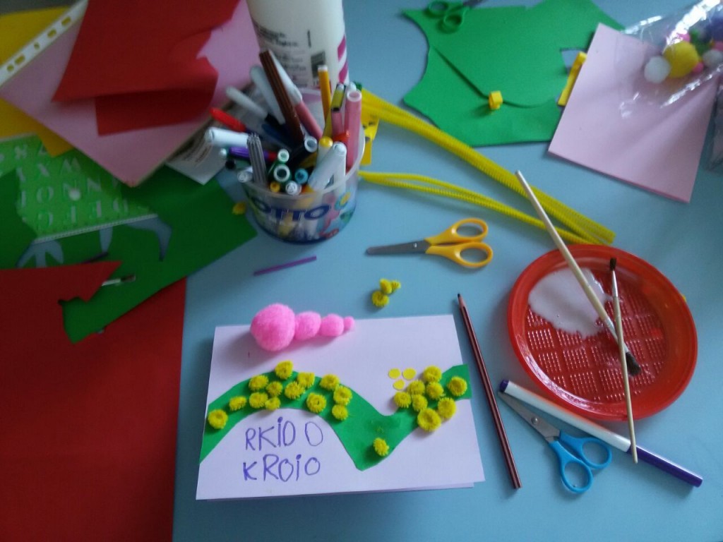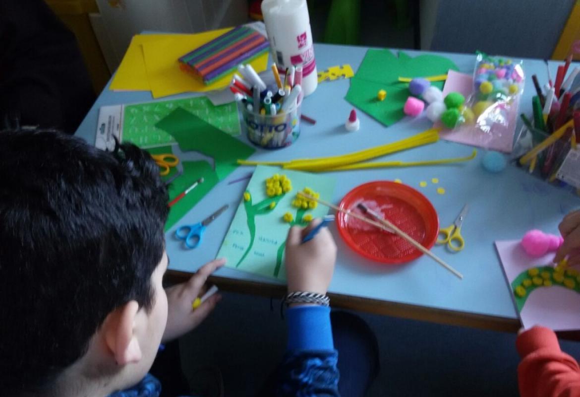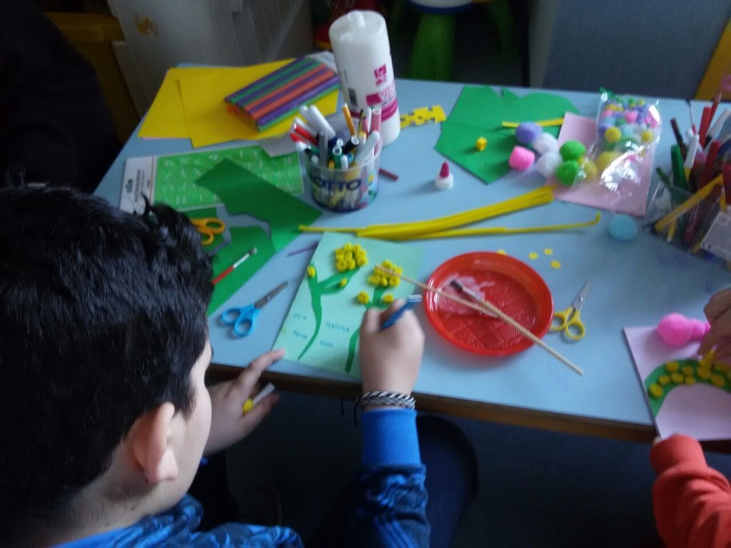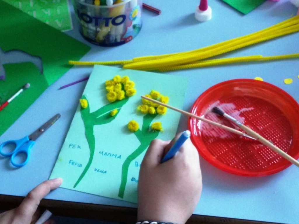 Non serve poi tanto, per fare un bel lavoro. Delle forbici, cartoncino e ..tanto amore per creare le mimose; queste sono realizzate con cartoncini, pon pon e scovolini di ciniglia.