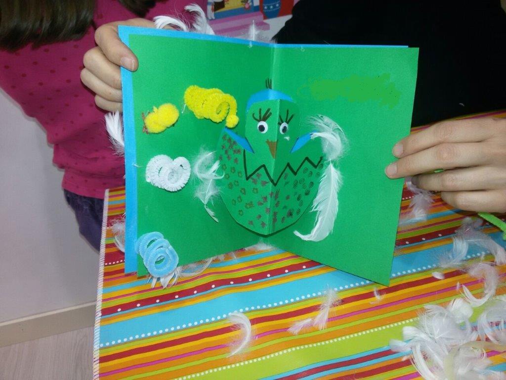Queste sono le foto dei lavoretti di Pasqua realizzati nel laboratorio ad Eurekakids dal tema: "Coccodè: la gallina ha fatto l'uovo". I bambini hanno creato dei biglietti pop-up di Pasqua utilizzando cartoncino, piume, pennarelli, scovolini di ciniglia e tanto altro! Perchè il nostro intento è quello di imparare giocando (o giocare imparando, se preferite), per consentire al bambino di scoprire il lato utile dell'arte ludica. Non perdete i prossimi appuntamenti. Ed intanto, buona Pasqua a tutti!