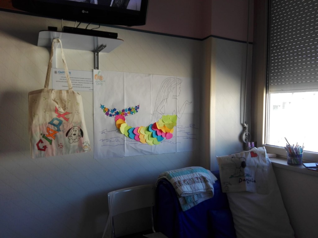 Oggi è stata davvero una giornata faticosa; siamo partiti in salita, le brutte notizie arrivano e ci fanno barcollare ma noi non molliamo. Proprio perché sono stati giorni veramente difficili per tutto il reparto, noi di Sale in Zucca, ci siamo rimboccati le maniche per portare un po' di leggerezza, tra partite a calcio, decorazione di shopper e sirene sognanti, il pomeriggio è volato in un batter di pinne!